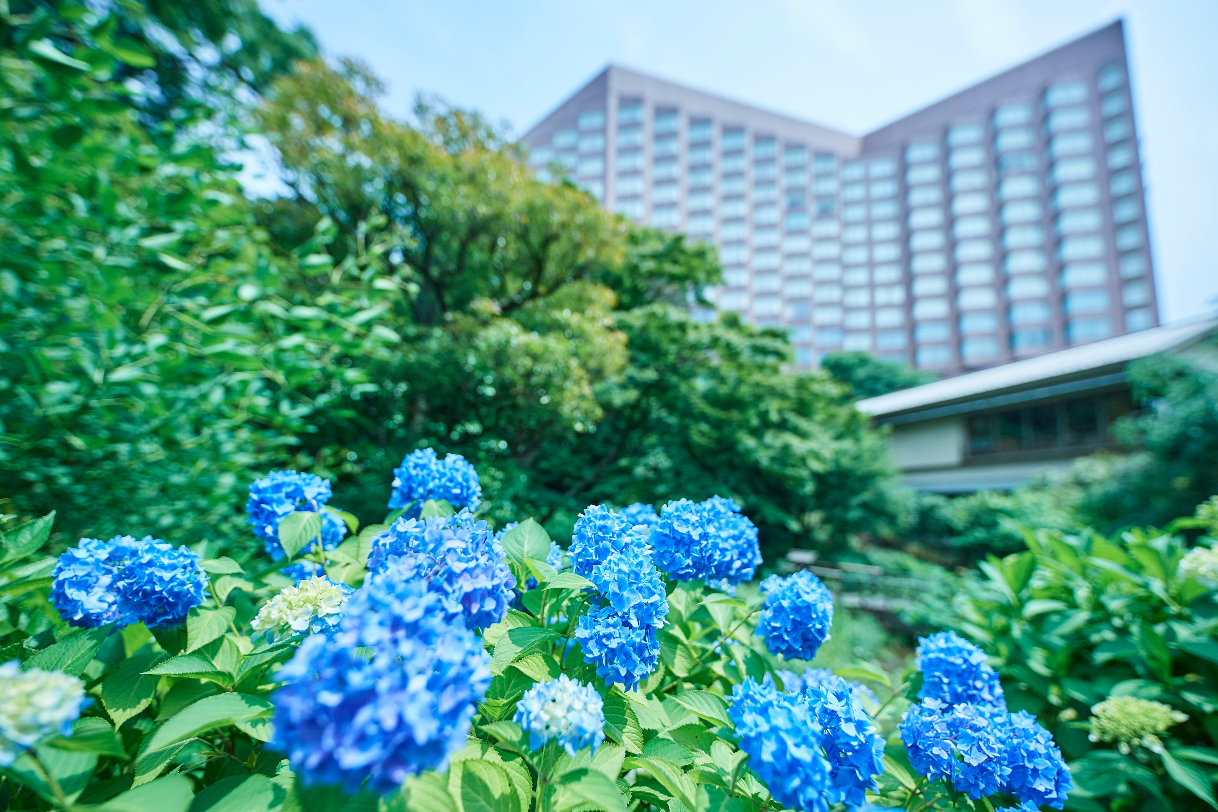 さながら森のような庭園には、数種類の紫陽花が植栽されています。気候や土壌の変化によって、夏にかけて少しずつ色が変わりますが、当ホテルの庭園ではブルーの紫陽花が多くを占めます。雨の水滴で煌めく庭園のグリーンと紫陽花のブルー、東京雲海のホワイトが織りなす空間は、思わず立ち止まって眺めていたくなる景色です。例年、可愛らしい「ハートの形をした紫陽花」が咲きます。ぜひ探しながら庭園散策をお楽しみください。
