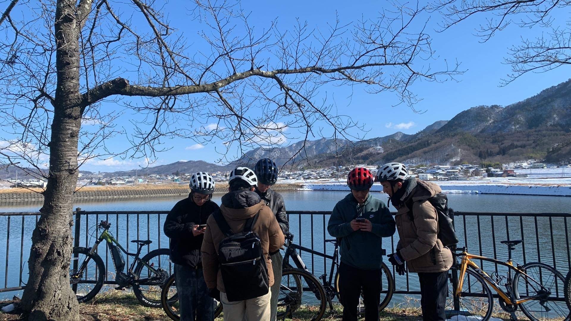 上田駅を挟んだ塩田平地域で指定されている日本遺産「太陽と大地の聖地 信州上田塩田平」に登録された生島足島神社や前山寺などのコンテンツをGURURI内のマップに落としこむことで、長期的には日本遺産のストーリーをテーマとして上田城などのある市街地と塩田平地域との周遊促進を狙いとしました。また、これまでナレーションは日本語のみの対応でしたが、本実証実験から英語を追加しました。さらに、単純にコンテンツを製作するだけではなく、上田市でサイクル事業を運営する株式会社ELSと協働で、登録されたスポットを巡るサイクルツーリズムイベントを実施しました。モニターとして、上田市内の専門学校長野ビジネス外語カレッジの生徒の方に参加いただき、コース途中では和菓子屋などにも立ち寄ることで、日本文化に触れてもらうきっかけを作りました。実施後にはアンケートを回収し、多言語のコンテンツについても内容理解していただき、塩田平地域の歴史や文化に触れるきっかけとなりました。