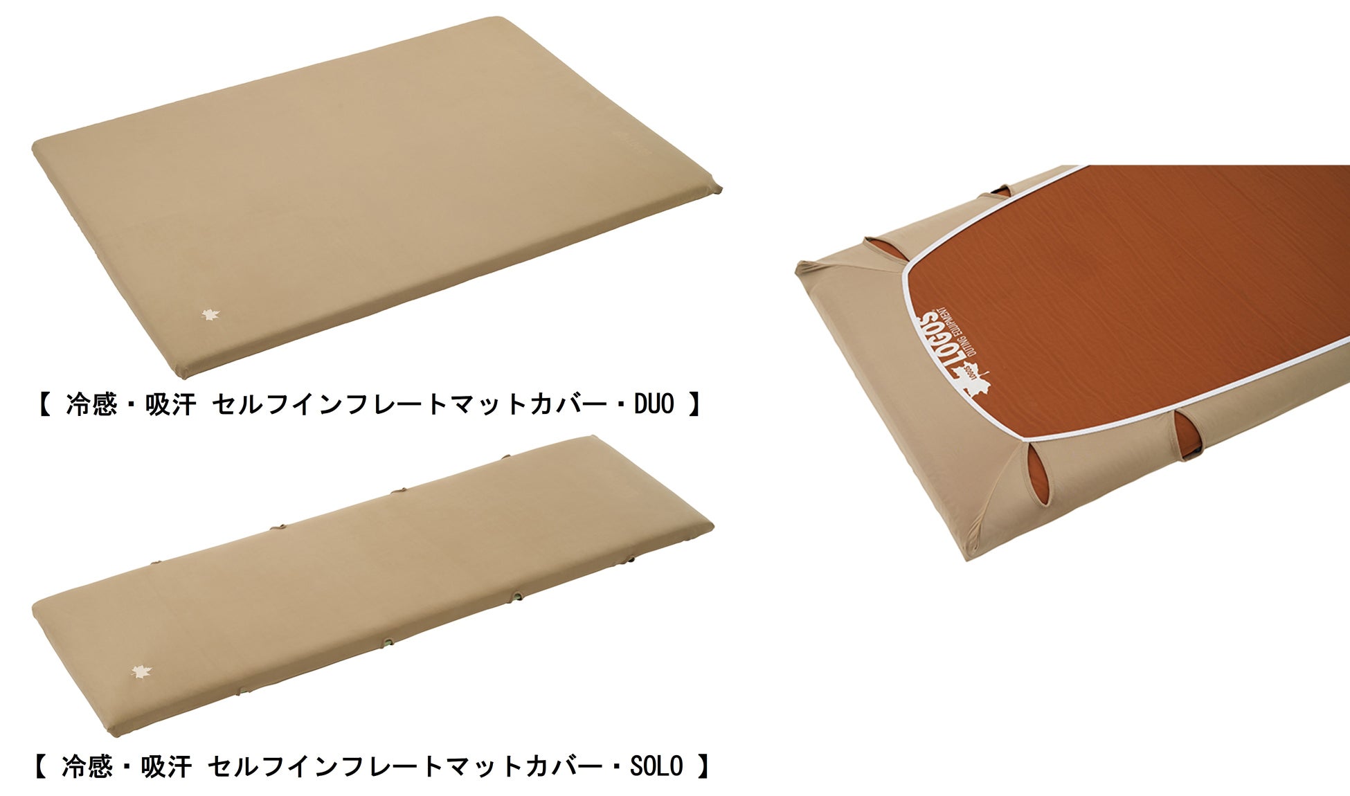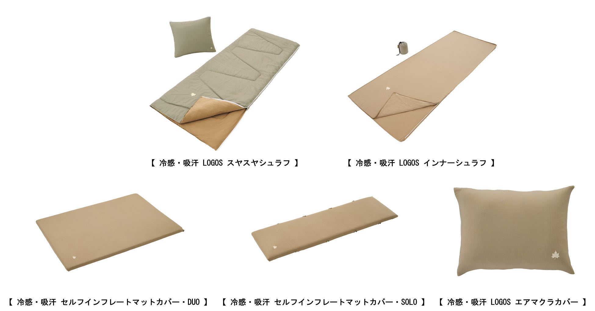 そのほか、別売りの「(高密弾力)55セルフインフレートマット」にぴったりな「冷感・吸汗 セルフインフレートマットカバー」2サイズや、別売りの「セルフインフレート まくら」に対応する「冷感・吸汗 LOGOS エアマクラカバー」を展開します。