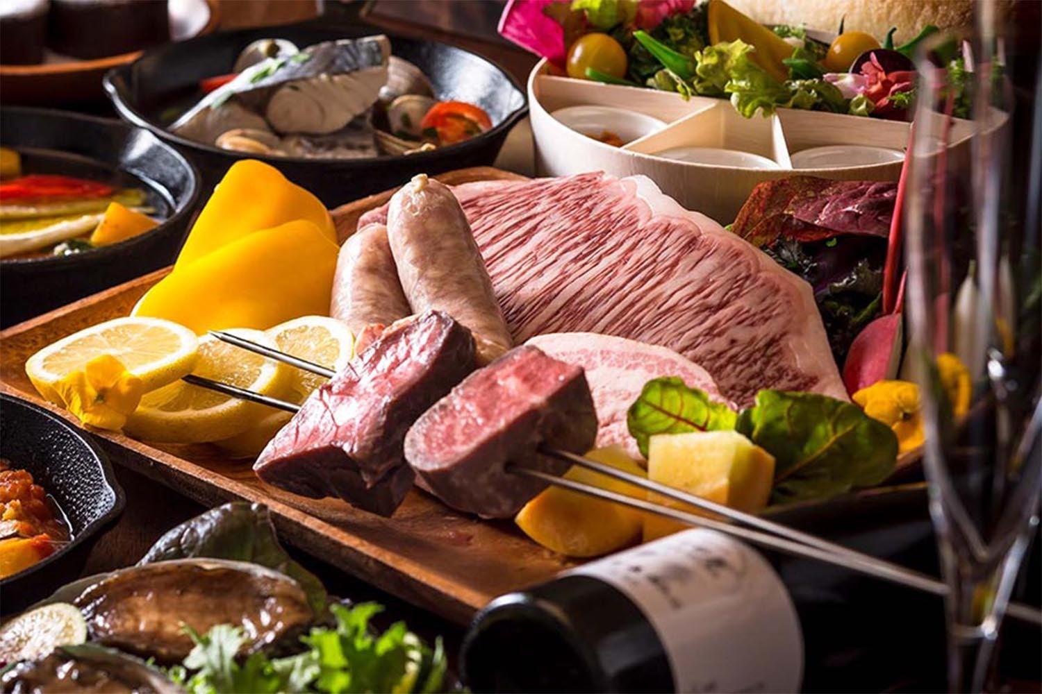 夕食はご当地食材を中心とした旬食材を豪快にグリル。