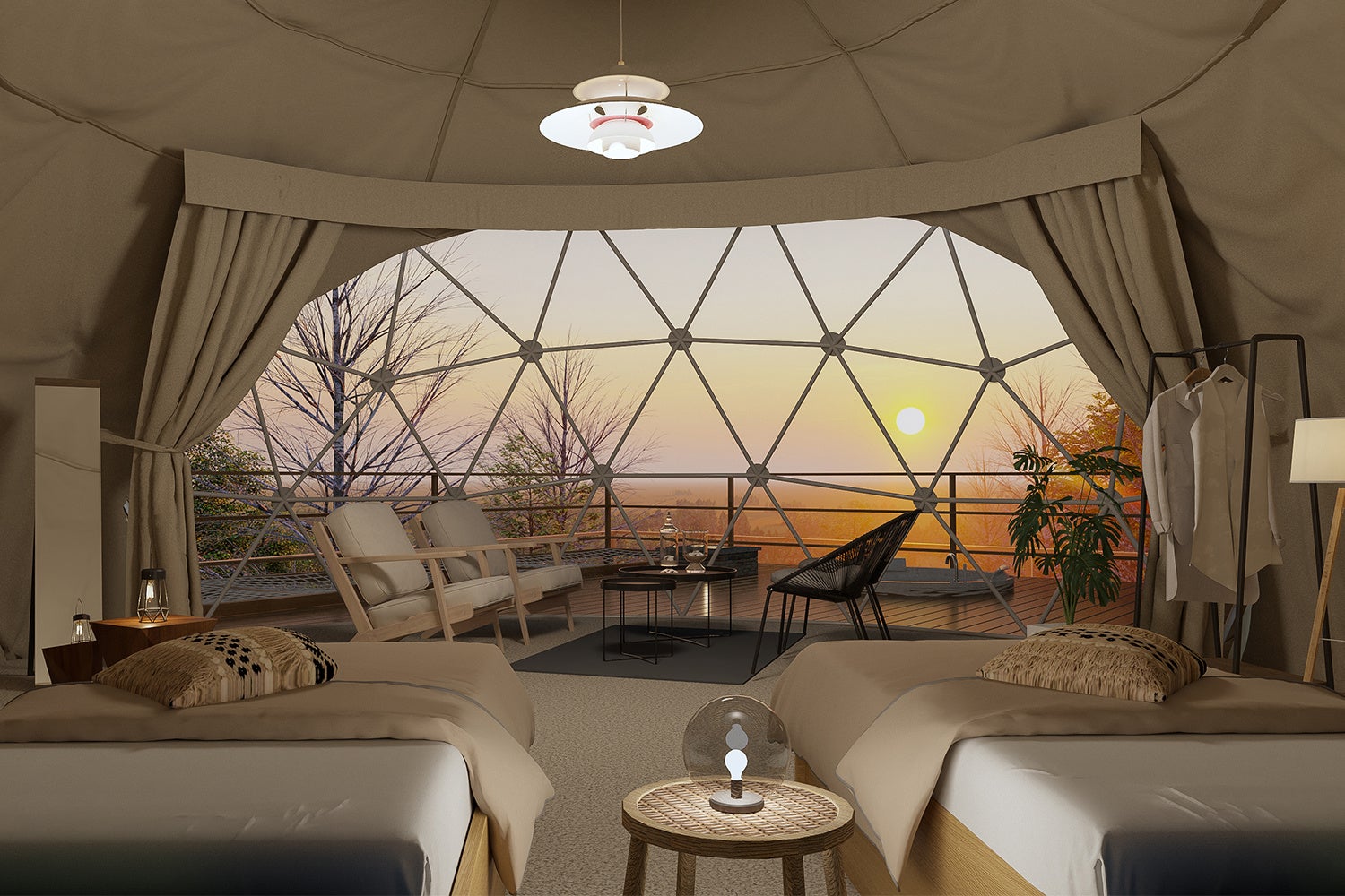 パノラマ風景を楽しめる「吉井百年公園」に 新たなグランピング施設がオープン。