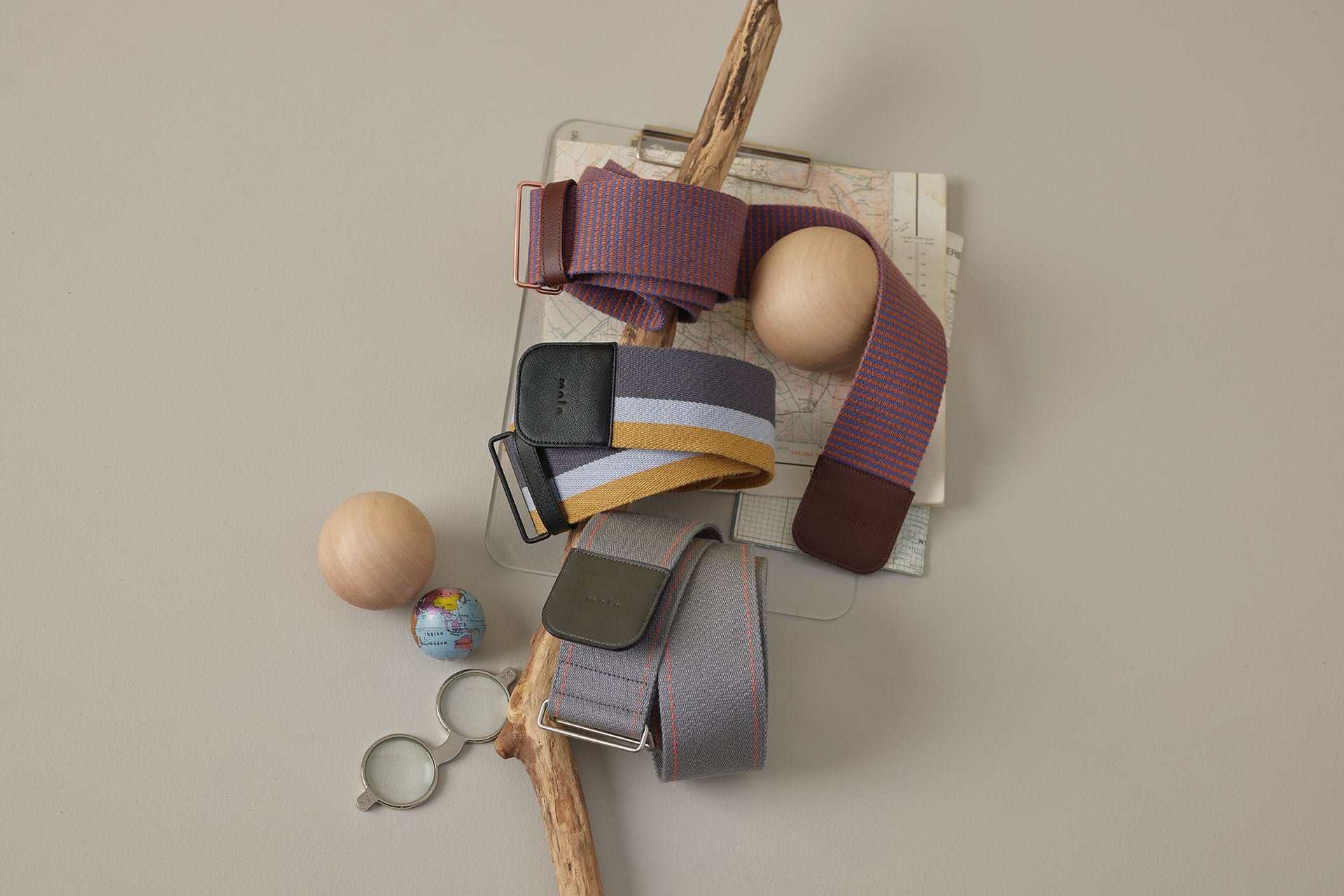 スーツケースと同様にプロダクトデザイナー柴田文江氏によりデザインされた新たなラゲージベルトは全6種類。ステッチがアクセントになったデザインやヒッコリーストライプを活かしたパターンなど、まるでファッションのベルトを楽しむ感覚で気軽に取り入れやすいデザインです。ラゲージベルトを取り入れることで旅のムードや一人ひとりの個性に寄り添い、高揚感をプラスしたり自分らしい旅を引き立ててくれるきっかけとなることを勧めています。ベルトの金具や皮革の色はそれぞれスーツケース本体色に沿って採用していますが、どの色も自由な組み合わせを楽しめるようなデザインになっています。