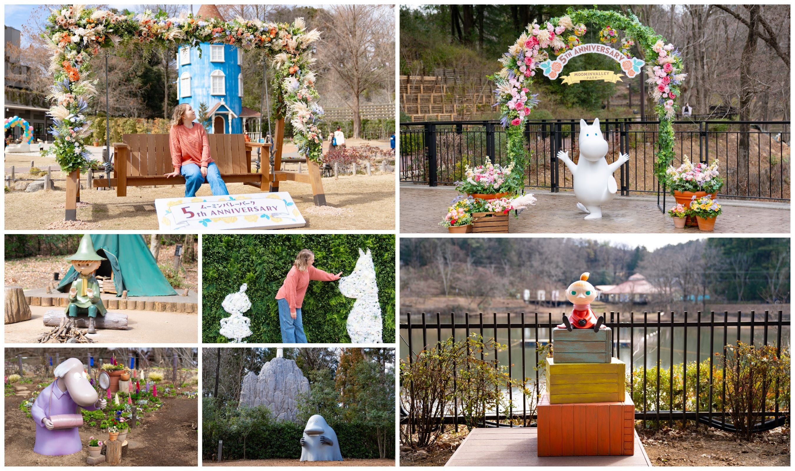 ムーミン・リトルミイ・スナフキン・ヘムレンさん・モランの5体のキャラクターオブジェがパークのいろいろな場所に登場いたしました。