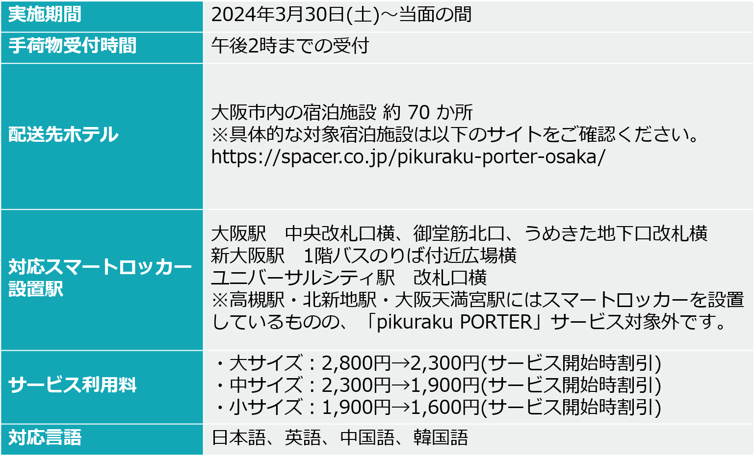 ・ 大阪エリア https://spacer.co.jp/pikuraku-porter-osaka/