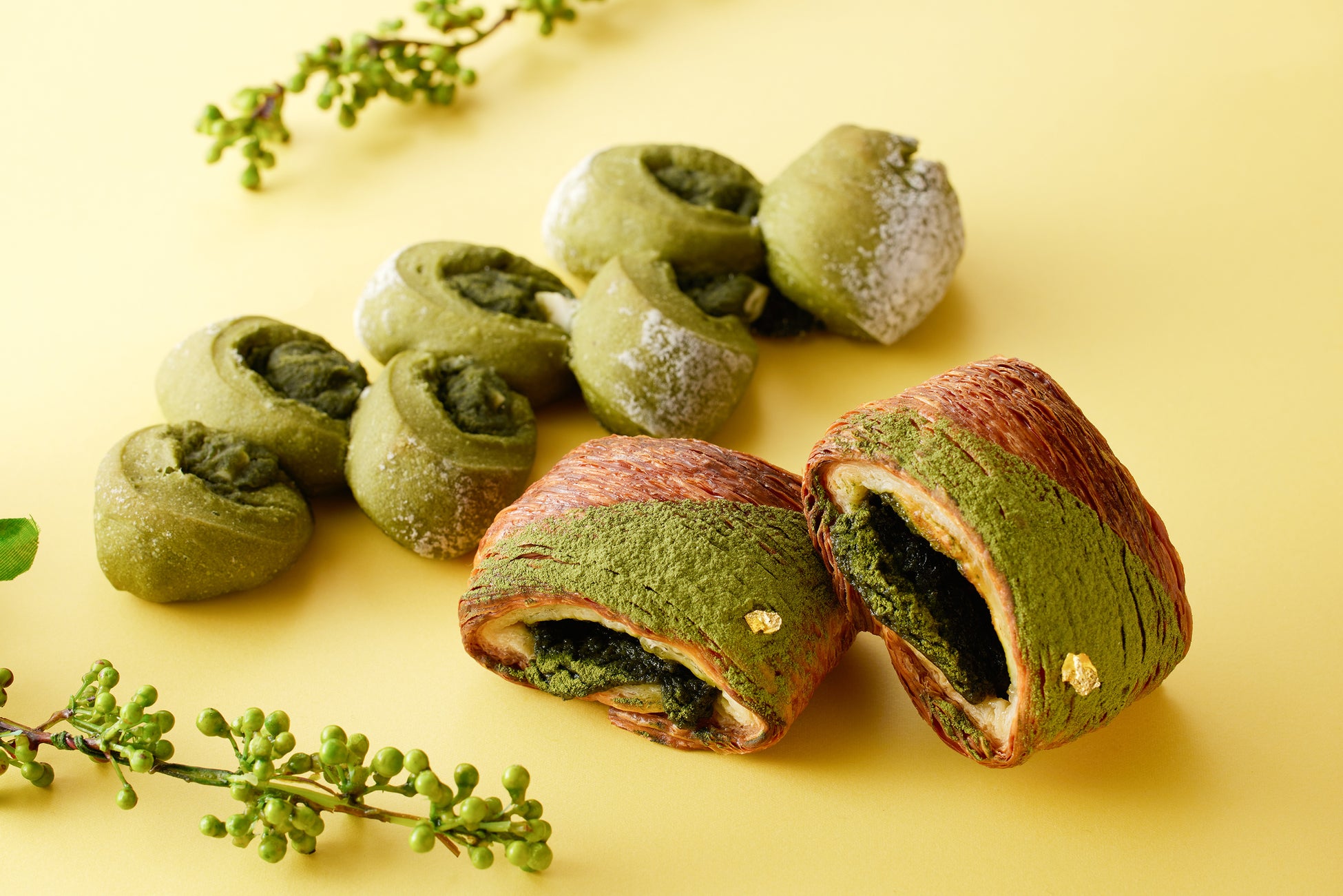 また、デニッシュ生地の層が美しい「抹茶のパン スイス」や、米粉入りのもっちりとした生地がやみつきになる「抹茶とホワイトチョコのエピ」など、新茶の季節ならではの抹茶を使用したベーカリー商品もご提供します。