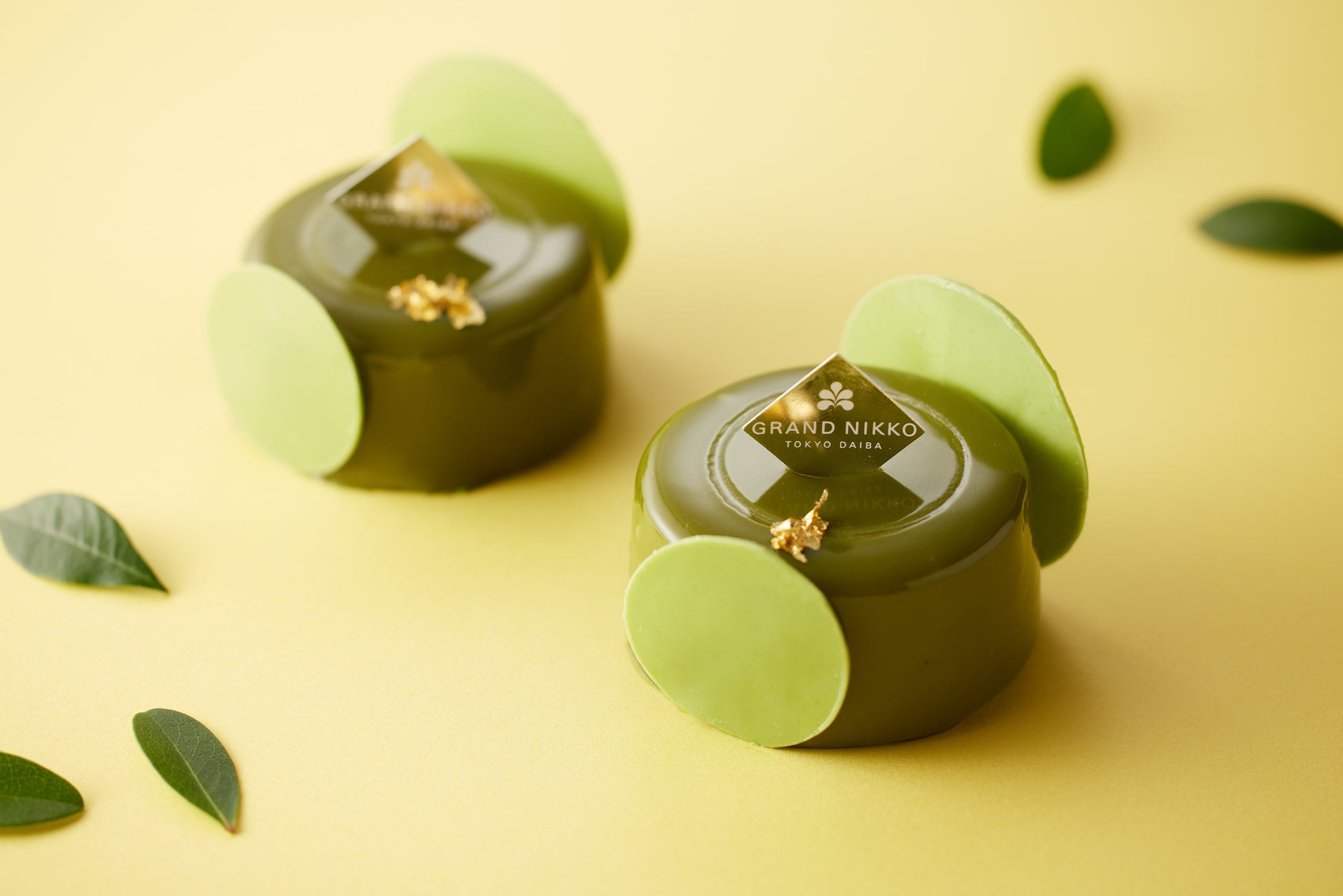 抹茶のムースの中に抹茶のジュレとパッションフルーツのクリームを入れ、艷やかな抹茶のグラッサージュで仕上げました。香り高い抹茶の風味と、爽やかなパッションフルーツのハーモニーをお楽しみいただける、新緑をイメージしたスイーツです。