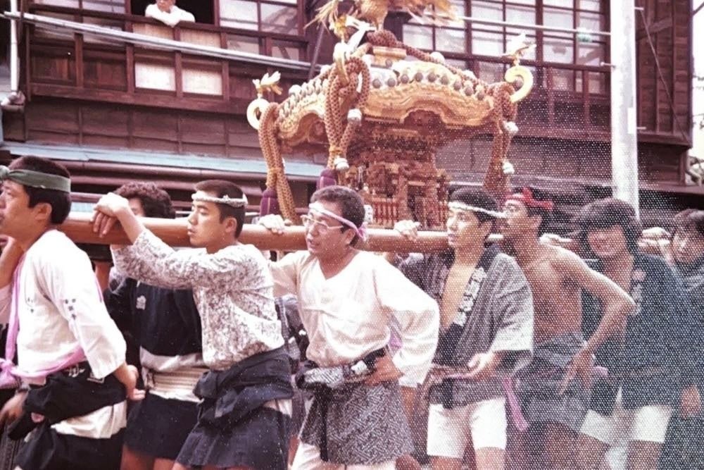 大きなお神輿、半被姿、お囃子、色とりどりの屋台、射的に輪投げ。
