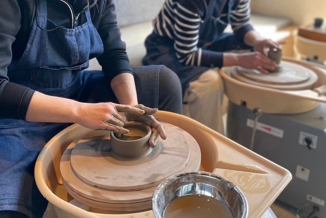 器や湯呑みなど、お店で使用する食器の一部は店主自らろくろをまわし制作しました。
