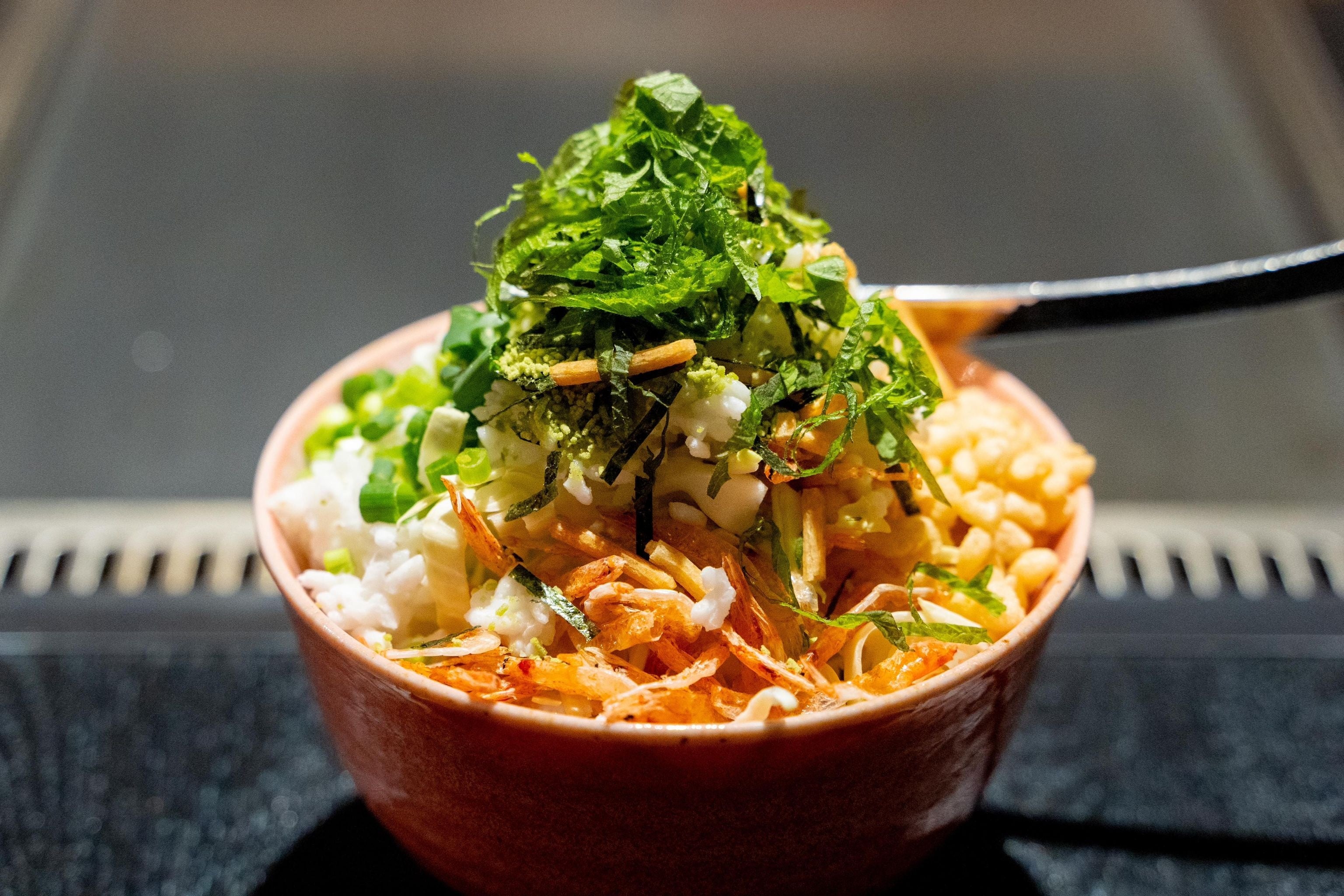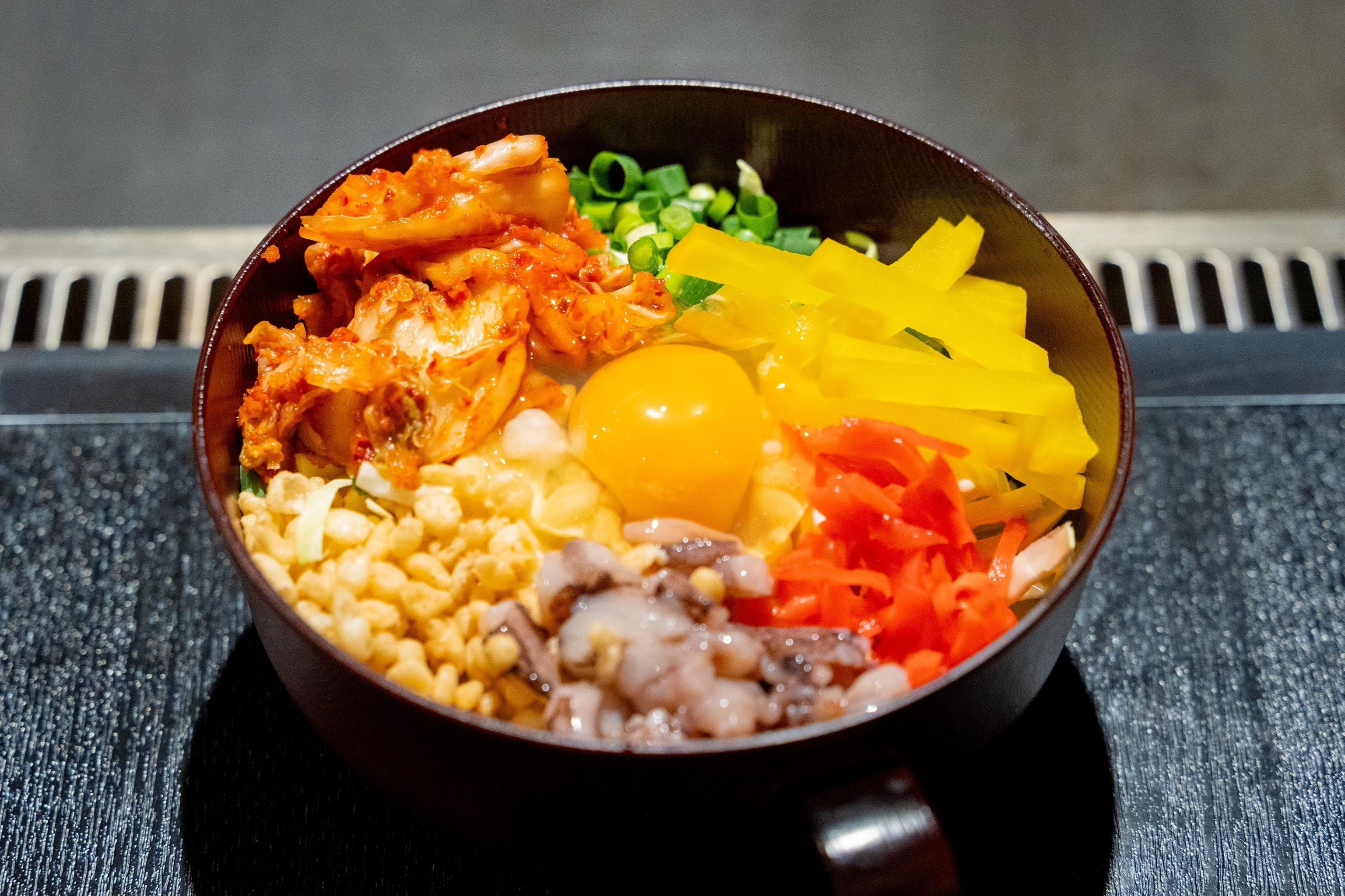 こちらのメニューは、ノーマルもんじゃ(キャベツ、桜エビ、天かす、切りイカ)に、射的3発分が付いています。射的の景品にはエビ、イカ、ホタテ、豚肉、おもちゃ、駄菓子などたくさんの景品があります。
