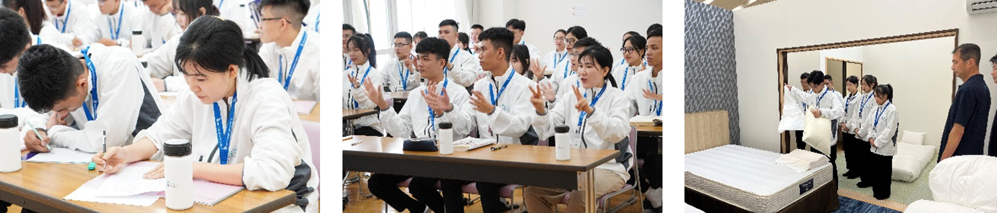 「成田・ホスピタリティ・アカデミー」での講習を修了した技能実習生は、現在、各配属先ホテ ルで実習を開始しており、当アカデミーで身に付けた日本語やホスピタリティの知識や経験をもと に第一線で活躍をしております。配属先ホテルからは、「研修の成果が出ていて、ベットメイクが上手」「客室清掃、レストランサービスにおいて既に現場で貴重な存在となっている」など実地に 近い研修経験を高く評価するコメントをいただいております。