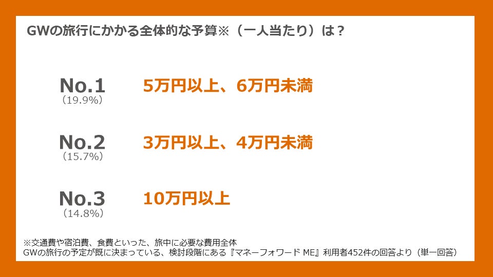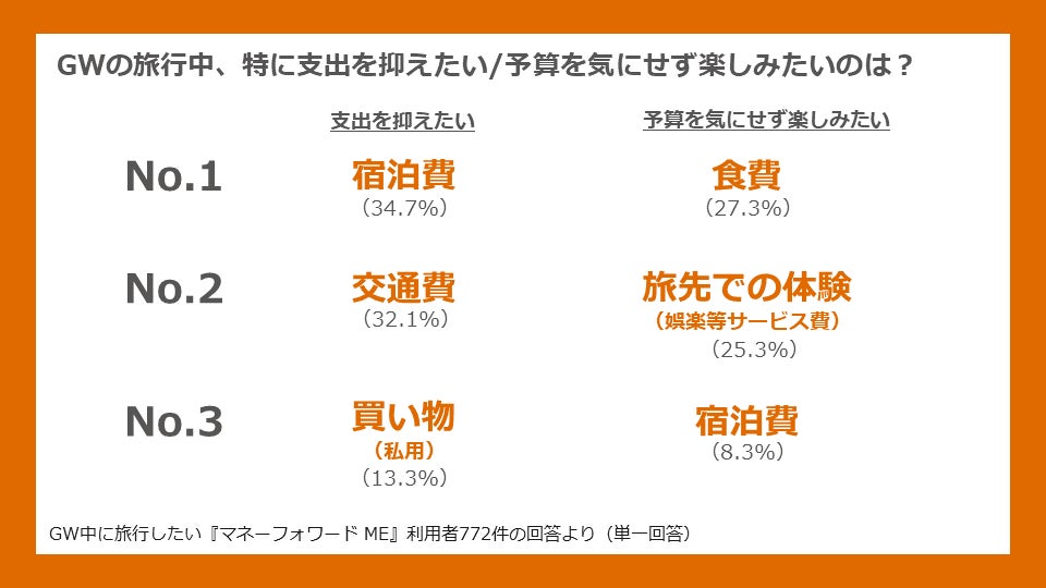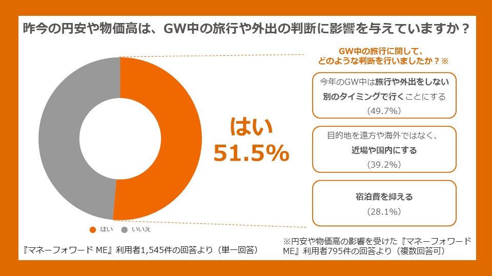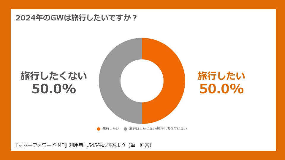 株式会社マネーフォワードは、お金の見える化サービス『マネーフォワード ME』の利用者を対象に、2024年のゴールデンウィーク(GW)の旅行とお金についてアンケート調査を実施しました。