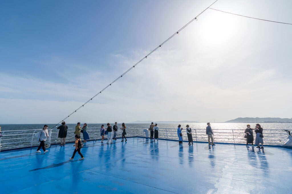 航路は、いよいよ来年開催する「大阪・関西万博」の会場となる夢洲(ゆめしま)を海から眺められる特別ルート。大きく船を旋回させて万博会場をゆっくり眺めたり、絶景スポットでは船を止めたりとルミナス神戸2ならではのクルーズを体感できます。