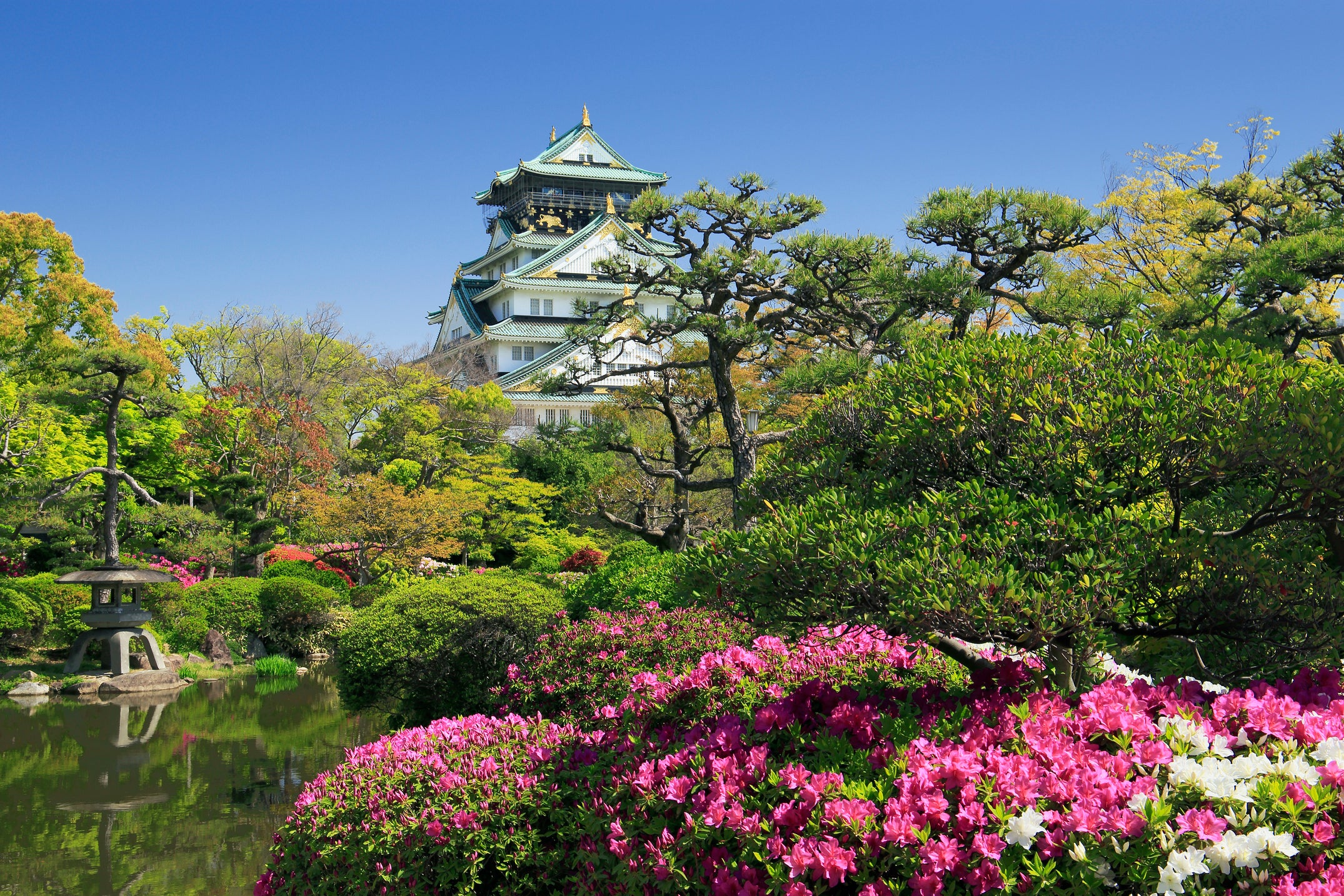 ホテルに隣接し、コンサート会場である「大阪城ホール」を擁する大阪城公園は、東京ドーム約23個分の広大な敷地面積を誇り、数々の重要文化財をはじめ、梅林や桜の名所「西の丸庭園」など大阪でも有数の観光スポットとして国内外に広く知られています。 中でも、歴史の転換期において、幾度となく重要な役割を担ってきた大阪城天守閣は、夜になるとライトアップが施され、幻想的な佇まいから「日本三大夜城」のひとつにも数えられています。 また、大阪城公園の最大の魅力は、四季折々の美しい自然。「母に感謝のコンサート」が開催される5月には、瑞々しいツツジやサツキ、フジといった花々を愉しむことができます。
