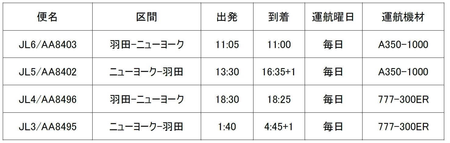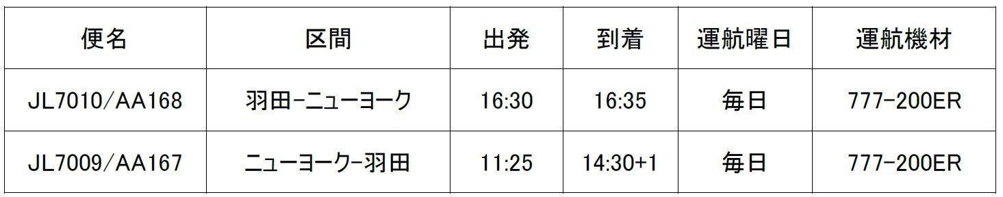 〜アメリカン航空が新規就航する羽田=ニューヨーク線にてJALコードシェアを実施〜