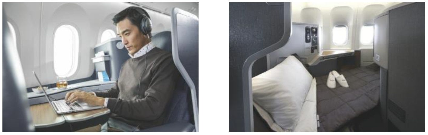 また、アメリカン航空が提供するFlagship®ビジネスでは、全席直接通路にアクセス可能なフルフラットシートで、ごゆっくりおくつろぎいただくことができます。日本=北米間のフライトでは、シェフ考案の和食や、睡眠テクノロジー企業Casper社と共同開発した枕やブランケット、バング&オルフセンのヘッドフォンで楽しむ無料エンターテインメントとともに、快適なフライトをお楽しみいただけます。