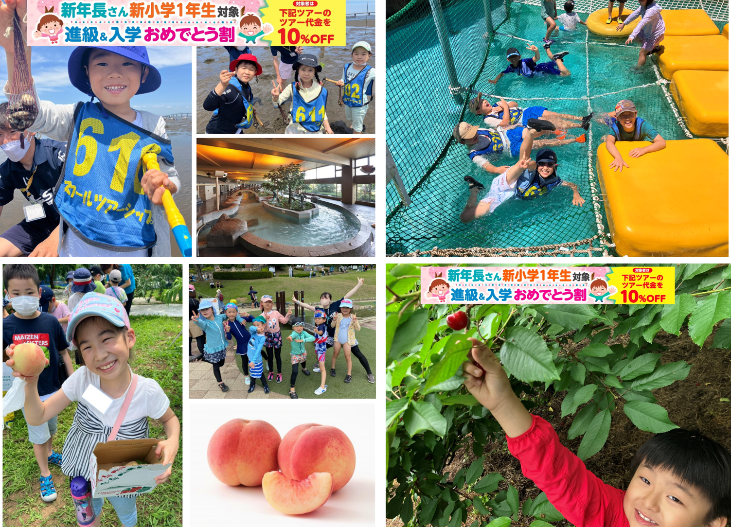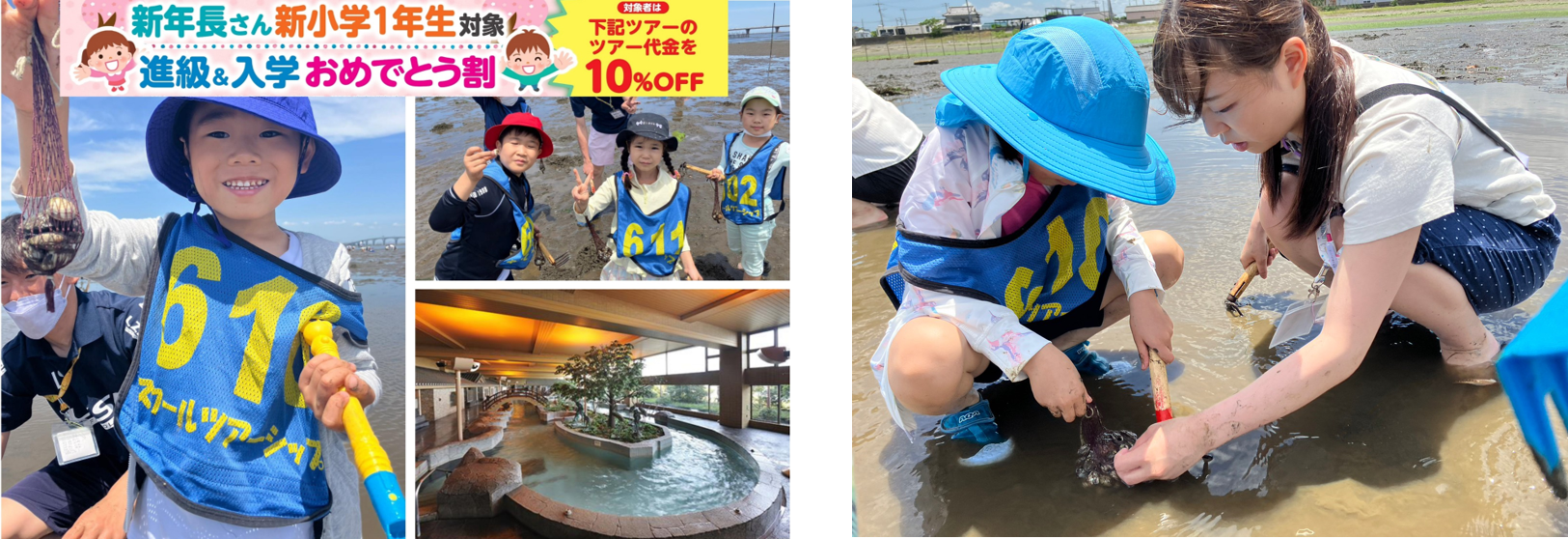 実施内容:潮干狩り体験、温泉テーマパークで遊ぼう、展望大浴場を楽しもう など