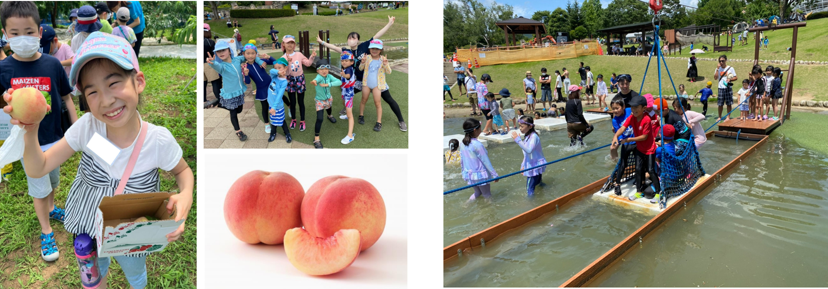 実施内容:フルーツ公園で遊ぼう、ウォーターアスレチックに挑戦、もも狩り体験 など