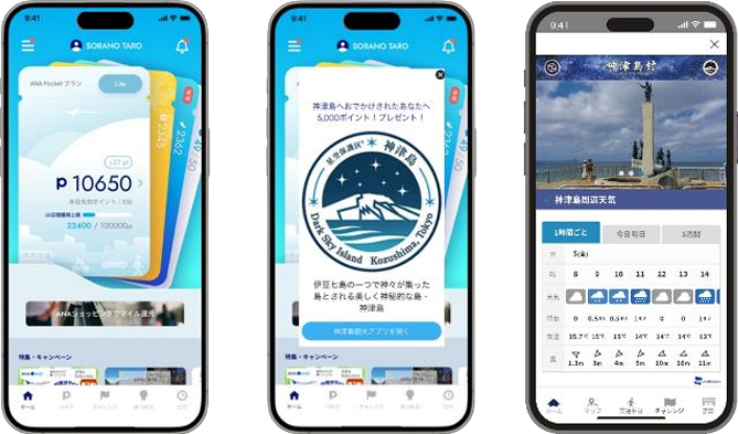 「ANA GranWhale」は、バーチャル空間で現実に近い「旅の入口体験」を提供し、実際にその地を訪れたいと感じて頂けるアプリをめざしています。神津島のバーチャル空間からは実際に神津島へ行くためのリアルな旅の予約をする事も可能です。バーチャルとリアルを繋いだ新しい旅行体験アプリで、神津島の魅力を発信してまいります。