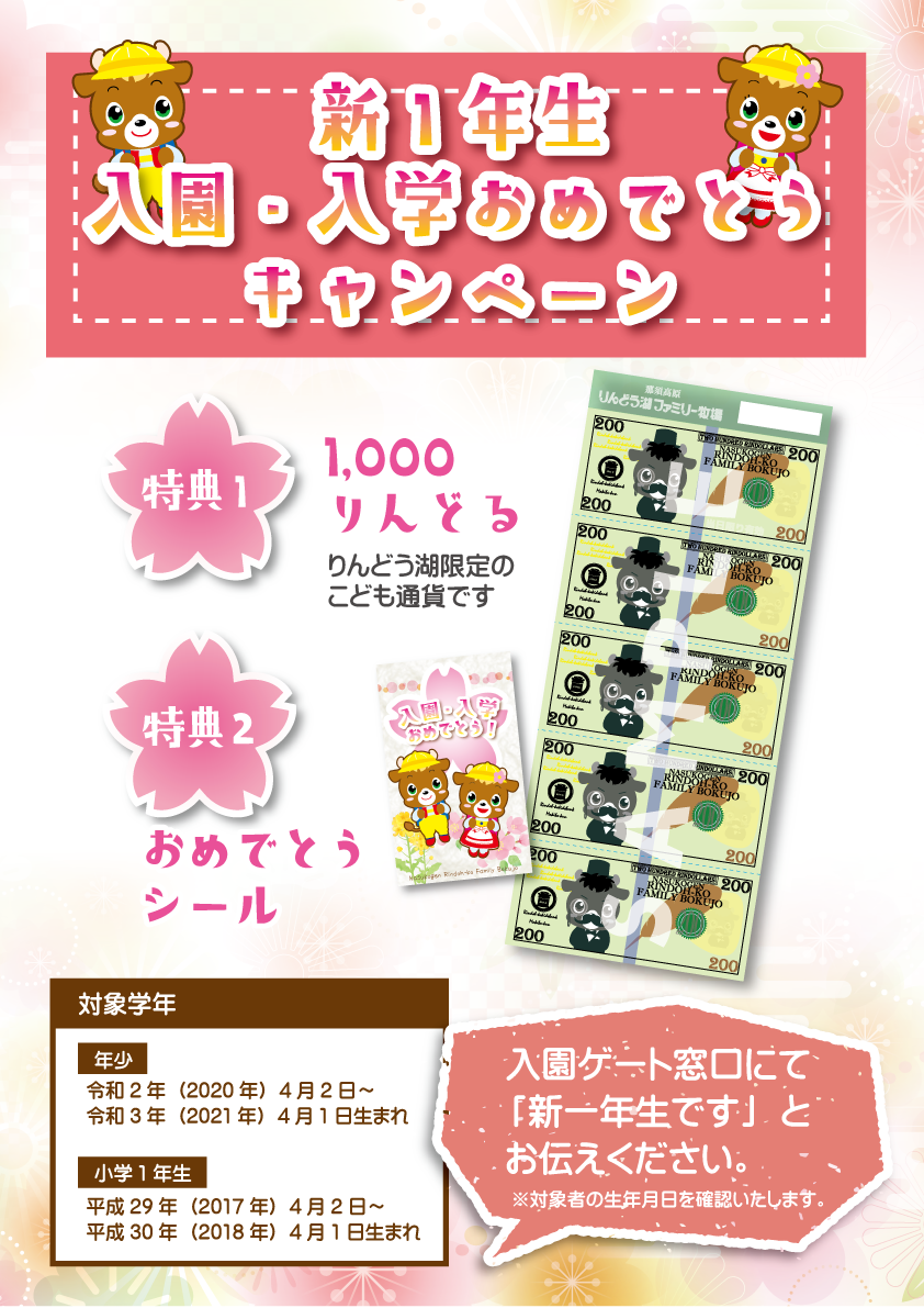 お子様だけでなく、お父さんお母さんにとっても大切な節目となるご入園・ご入学を、りんどう湖ファミリー牧場でもお祝いしたいという思いから、4月に幼稚園へご入園、小学校へご入学するお子様を対象に、プレゼントをお渡しするキャンペーンを行っています。