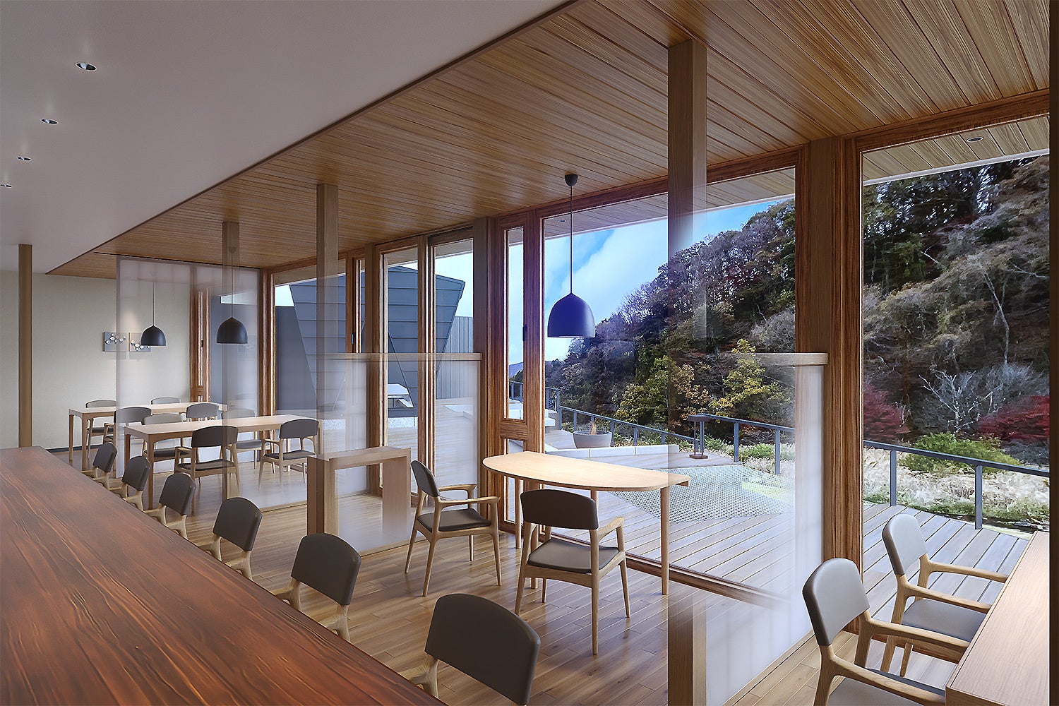 ヴィラに隣接したフロント棟には箒川のせせらぎを目の前に、自然の中に身を置いてゆったりお寛ぎいただける6名様までご利用可能な足湯テラスの他、カジュアルな雰囲気の中でバルスタイルのお料理が楽しめるダイニングレストラン「くれはキッチン」も誕生いたします。