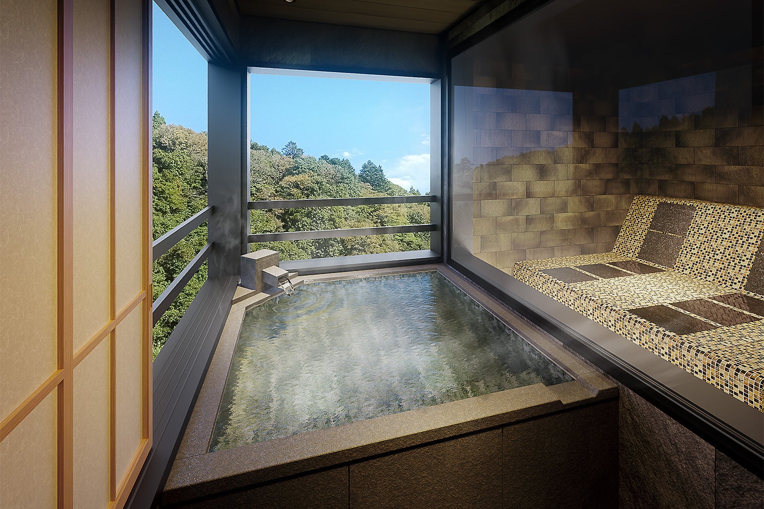 ◎上塩原の景色を望む半露天風呂&プライベート岩盤浴付