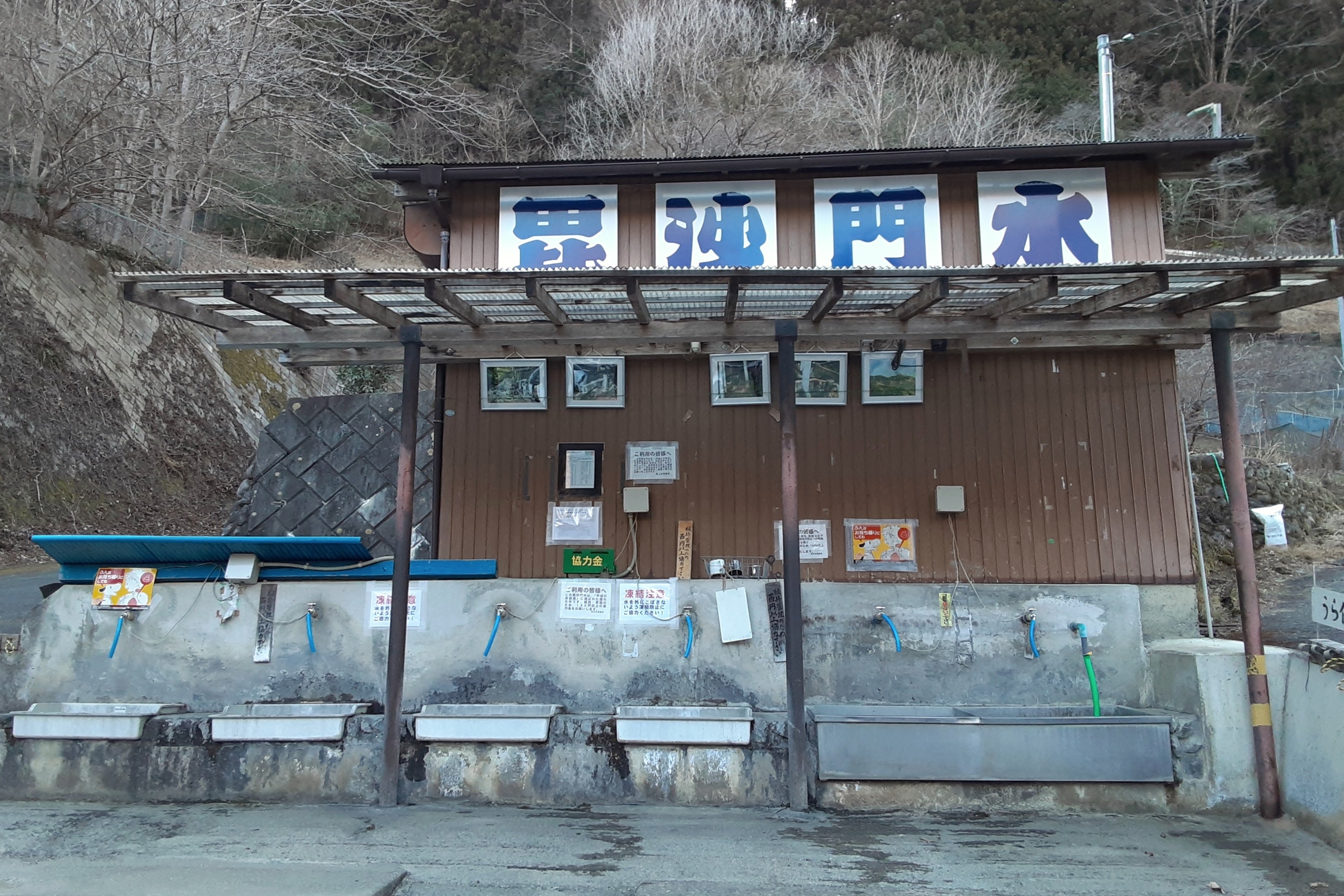 毘沙門水は、石灰岩でできた高さ約997mの白石山のふもとに湧くカルシウムとミネラルが豊富な湧き水。雨が降らなくても枯れたことがなく「神の水」とも呼ばれ、近くにある諏訪神社での天気占いにも使われてきました。