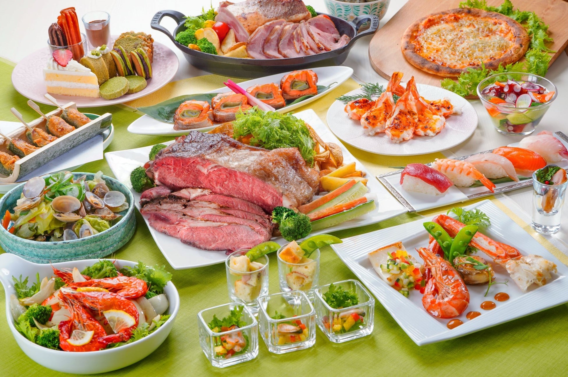 本ブッフェは、肉料理と魚料理どちらも堪能できる、ボリューム満点の贅沢な食べ放題の企画です。開催期間中のうち、5月2日(木)~6日(月)は、ゴールデンウィーク特別企画として、追加の料理を提供いたします。