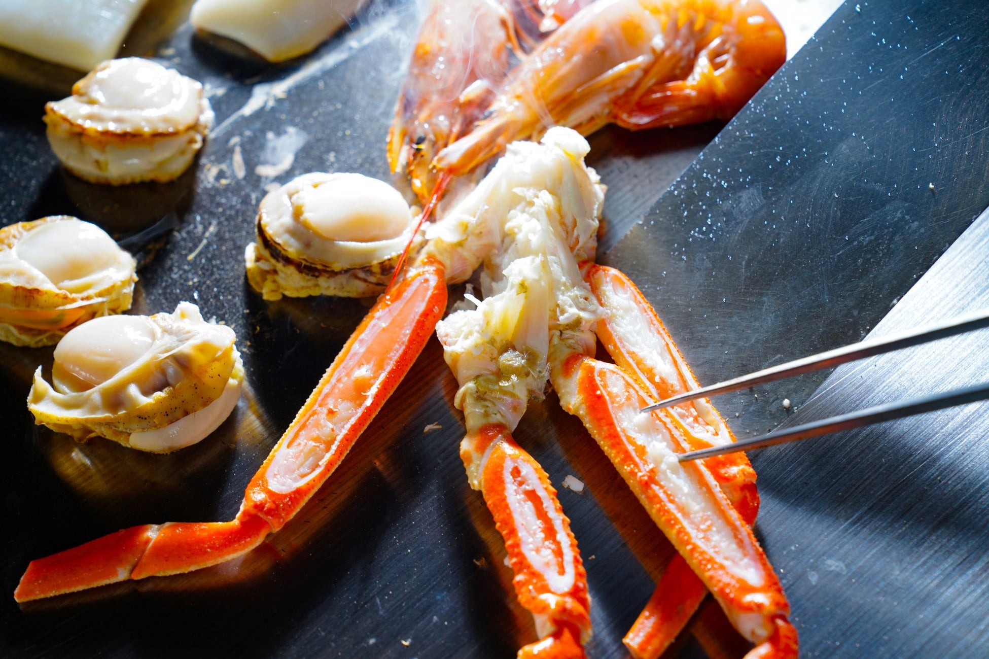 また、ゴールデンウィーク期間には、シーフード鉄板焼きに甘みたっぷりズワイ蟹が登場。握り寿司には、人気のマグロやブリなどのネタ5種類をご用意して、ライブキッチンで握ります。