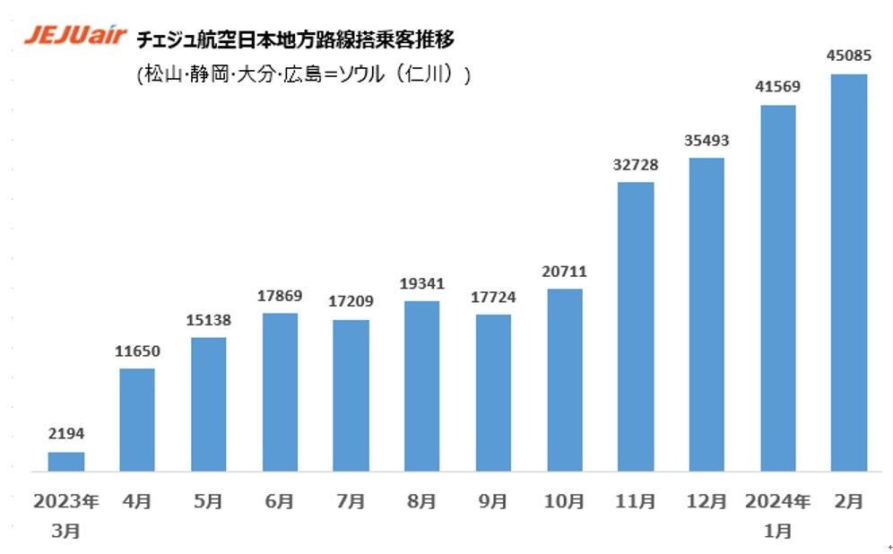 特に、チェジュ航空の日本地方路線の搭乗者数も持続的に上昇傾向を見せている。