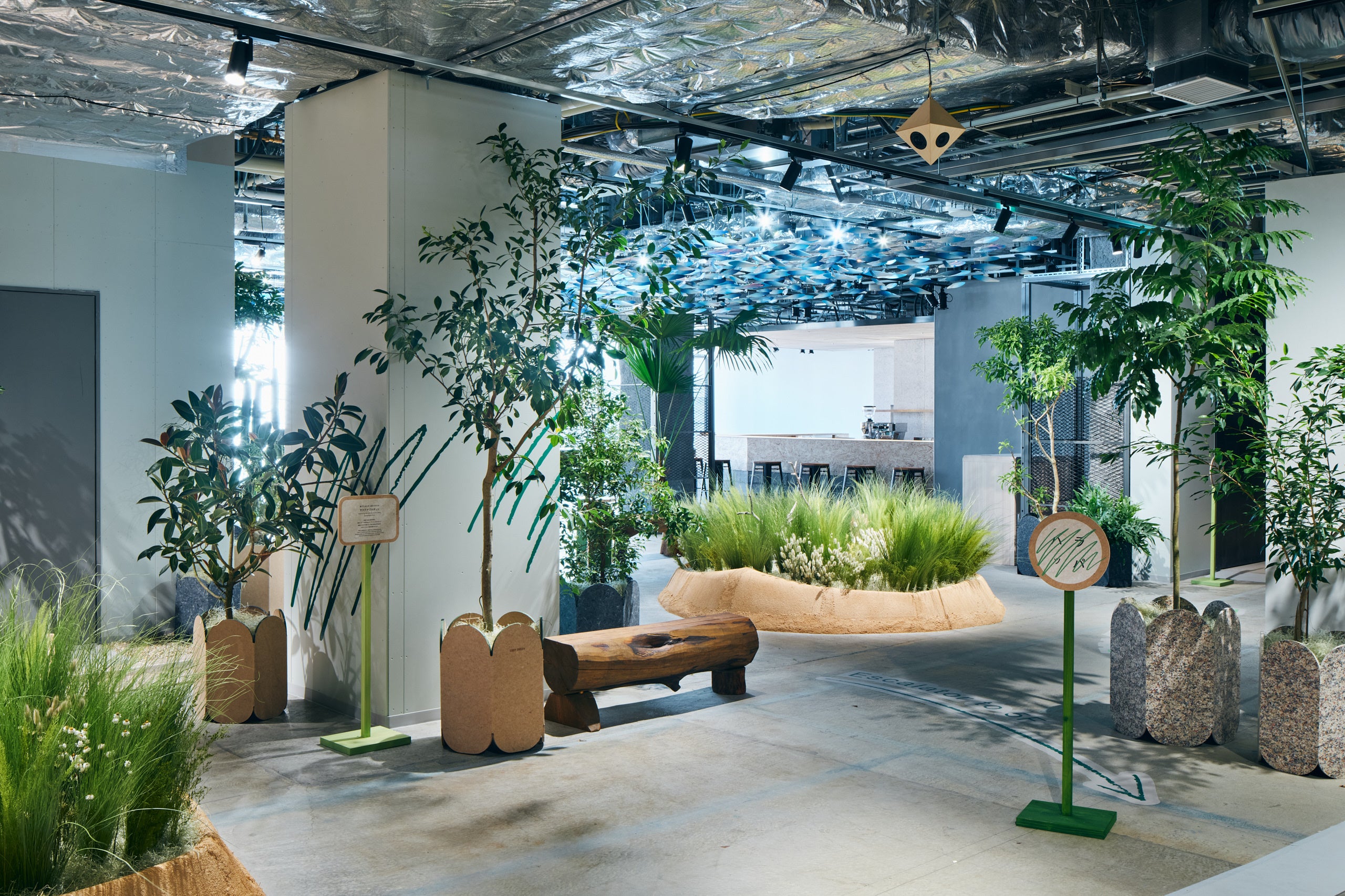 「ハラカド」4階の広大なスペースを使った「ハラッパ」は、各方面で活躍するクリエイターが、都会の真ん中で原っぱのような自然を感じながら、サステナブルなアートやコンテンツを楽しめる空間として誕生させました。