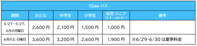 ●ご入園には、「来園日指定チケット(1Day パス)」が必要です。事前に電子チケットをご購入いただくか、お近 くのコンビニエンスストアでお買い求めください。
