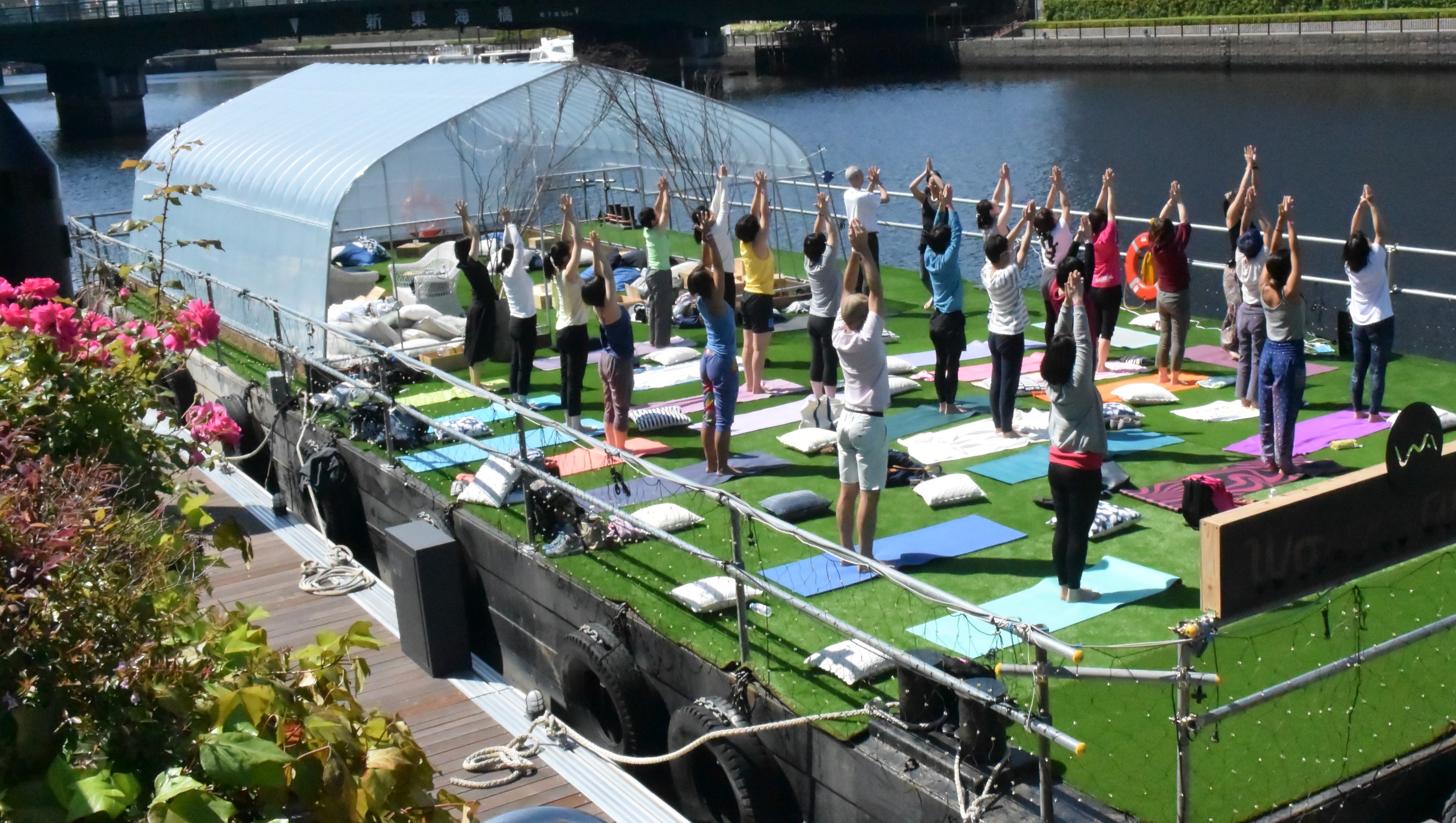 運河沿いのボードウォークに隣接した施設を会場に、「ヨガ・ワークショップ」を開催します。朝の心地よい空気を感じながら、太陽礼拝を中心に呼吸に合わせてヨガのポーズを行い、ゆっくり身体をほぐしていきます。自分の心と身体をじっくり観察し、天王洲での特別な朝のひと時をお過ごしください。初めての方でも気軽に参加いただけるプログラムです。(事前申込制)