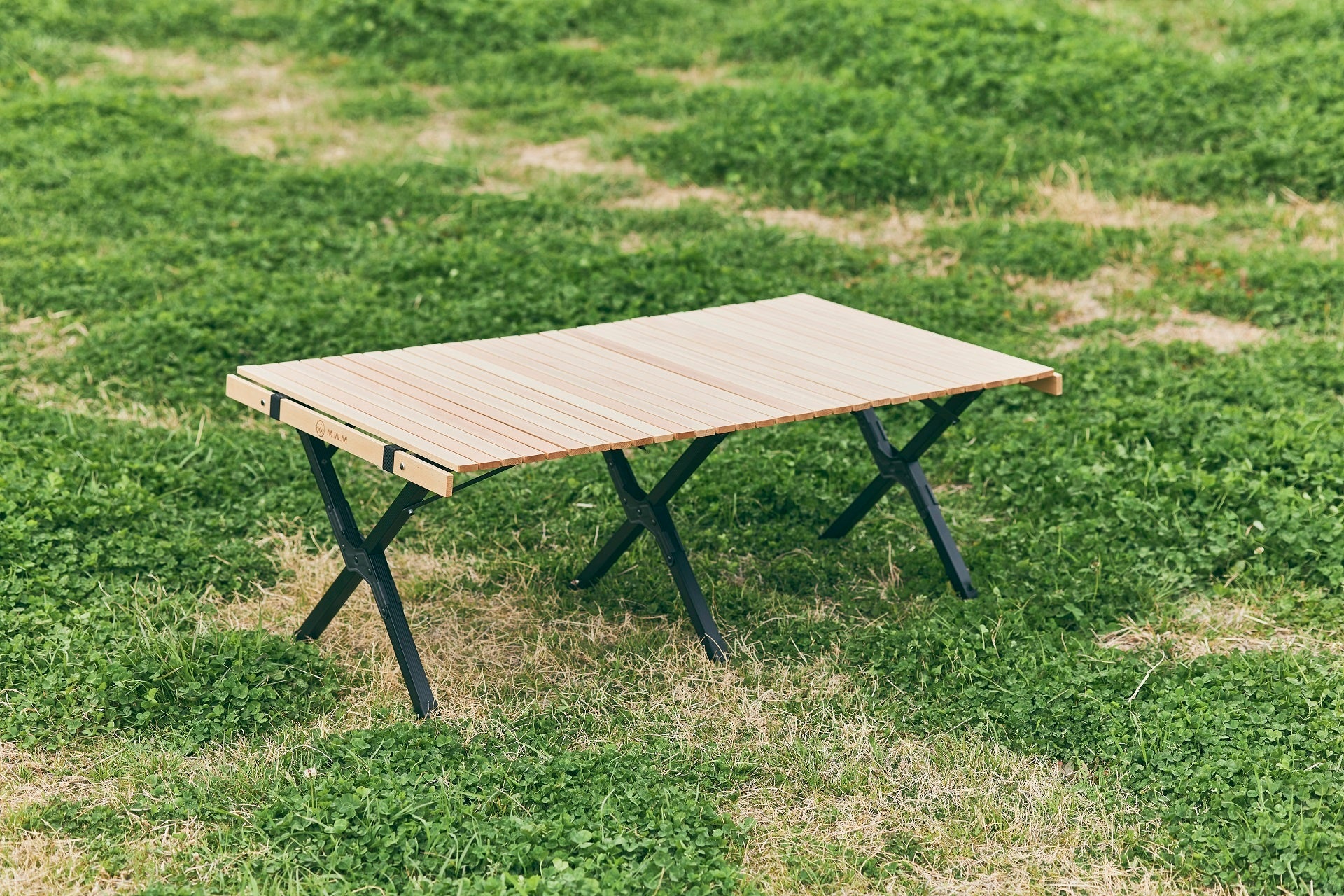 ロール式の天板は丸めて、組み立て式のフレームは折り畳んでコンパクトに収納でき、