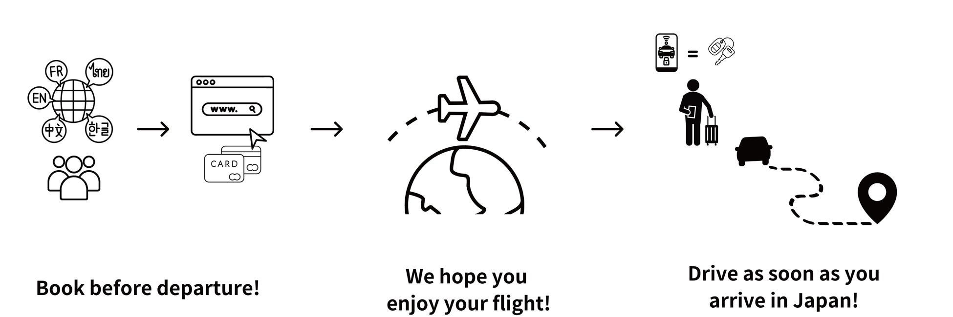 空港のコインパーキングにレンタカーを配車し、アプリでの鍵の開閉を活用することで、到着ゲートから待ち時間ゼロでのレンタカー利用が可能となります。旅先での困り事は、熟練のカスタマーサポートが多言語で対応いたします。