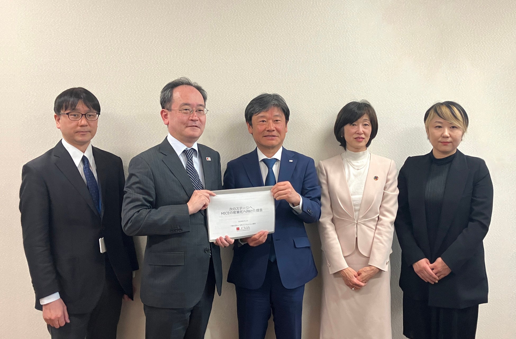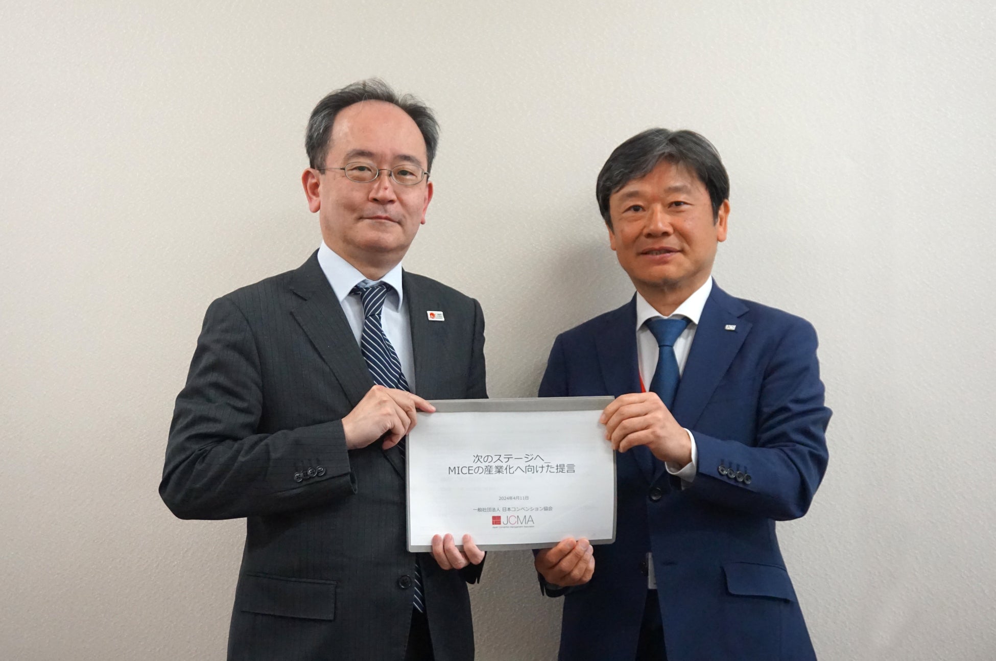 2024年4月11日、(一社)日本コンベンション協会(JCMA)では、近浪 弘武 代表理事をはじめとする理事が観光庁を訪問し、星野 光明 国際観光部長へ「次のステージへ_MICEの産業化へ向けた提言」を提出しました。