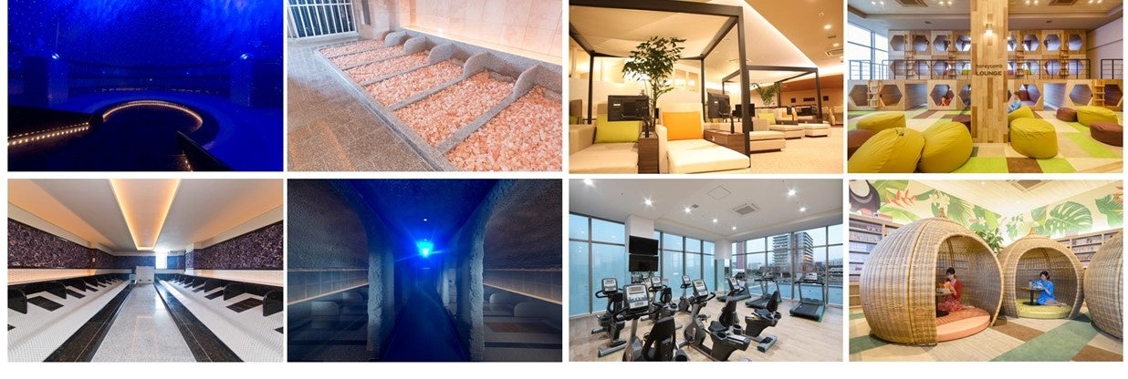 館内には九州最大級の規模で、9種の岩盤浴、多様な休憩スペース、トレーニングルーム、フォトスポット、足湯、飲食店4店舗、エステ、鍼灸整体、ボディケア、タイ古式、あかすり、ヘアサロンなどがあり、更には宿泊者用のホテルも併設しております。