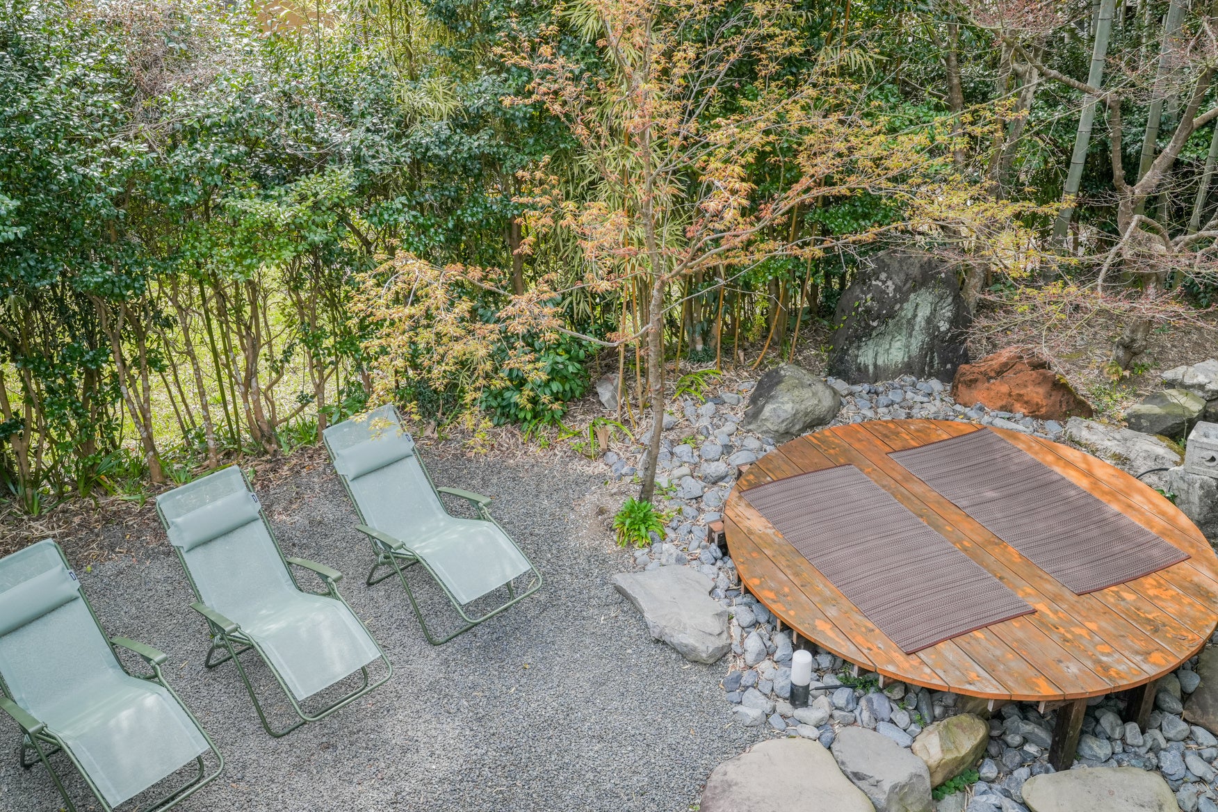 元々は茶室に付随する庭園としてつくられたお庭で外気浴ができます。奥静岡のおいしい空気を吸いながら、和の風情と自然を感じられる贅沢な時間を過ごすことができます。