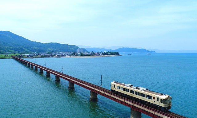 ③電車が海を走る! 京都丹後鉄道 見渡す限りブルーが広がる海の上を駆け抜けます。