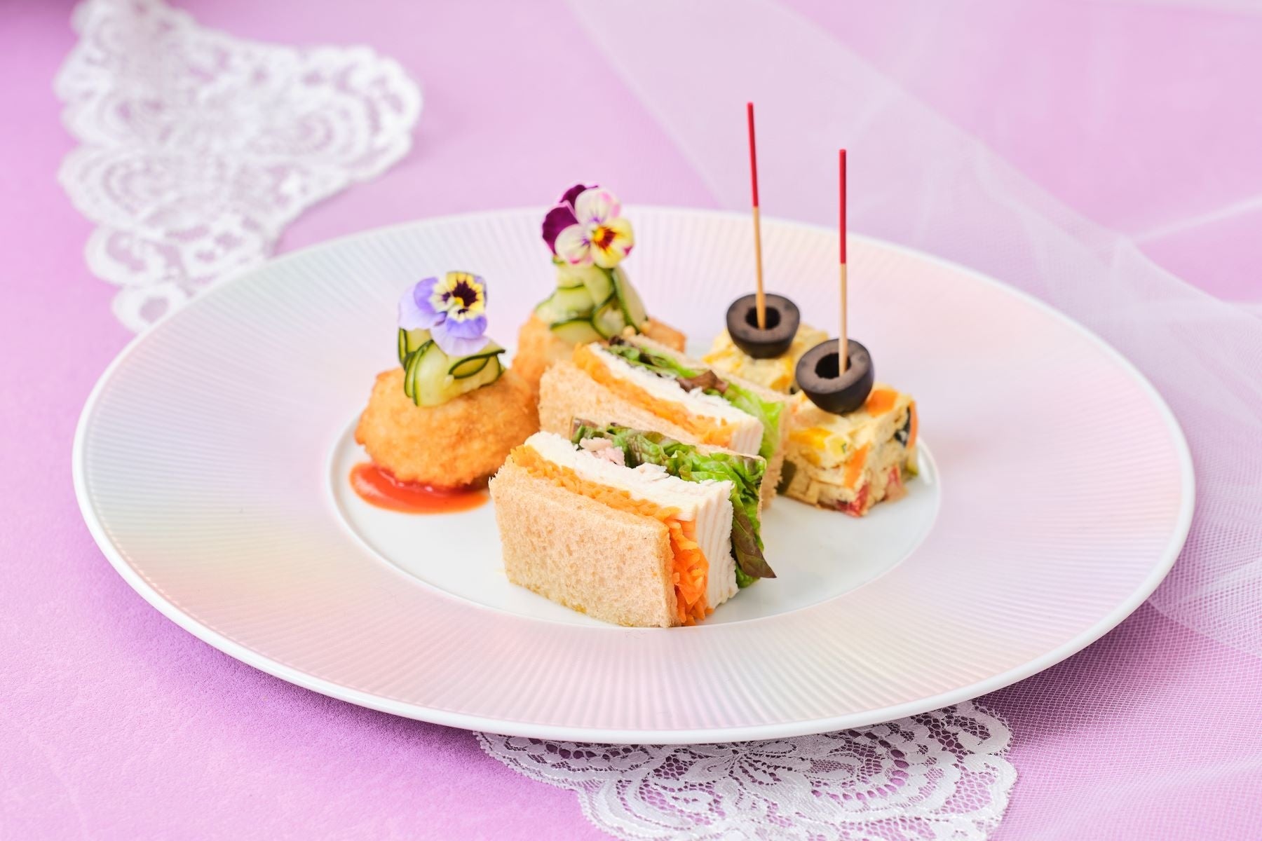 トリュフ風味のリゾットコロッケ/彩り野菜のトルティージャ/三河鶏のサンドイッチ