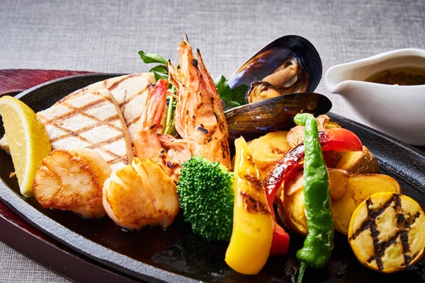前菜では一口サイズの盛り合わせをお楽しみください。2種から選べるメインディッシュの1つ目は「カジキ鮪・海老・帆立貝のグリルプレート」。素材の良さを最大限引き出し、香ばしくグリルした魚介と季節野菜を熱々のプレートでご提供いたします。香味野菜をふんだんに使用し、食感や香りを楽しみながらも、さっぱりとした日本人好みの味にアレンジしたソースでお召し上がりください。2つ目は「漁師風 魚介と季節野菜のコトリヤード」。フランス・ブルターニュ地方の郷土料理で蒸し煮にした魚介と野菜の絶妙な味わいを楽しめます。締めくくりのデザートは、大人が楽しめるパフェをご用意いたします。ショコラとベリーの最高の組み合わせを濃厚なピスタチオアイスとともにご堪能ください。