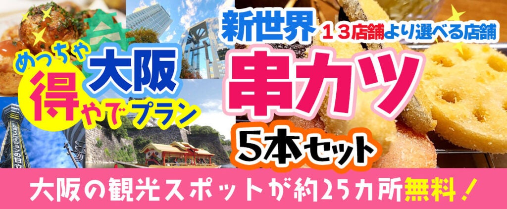 ご旅行代金 大阪・新世界の13店舗より選べる串カツ5本セット