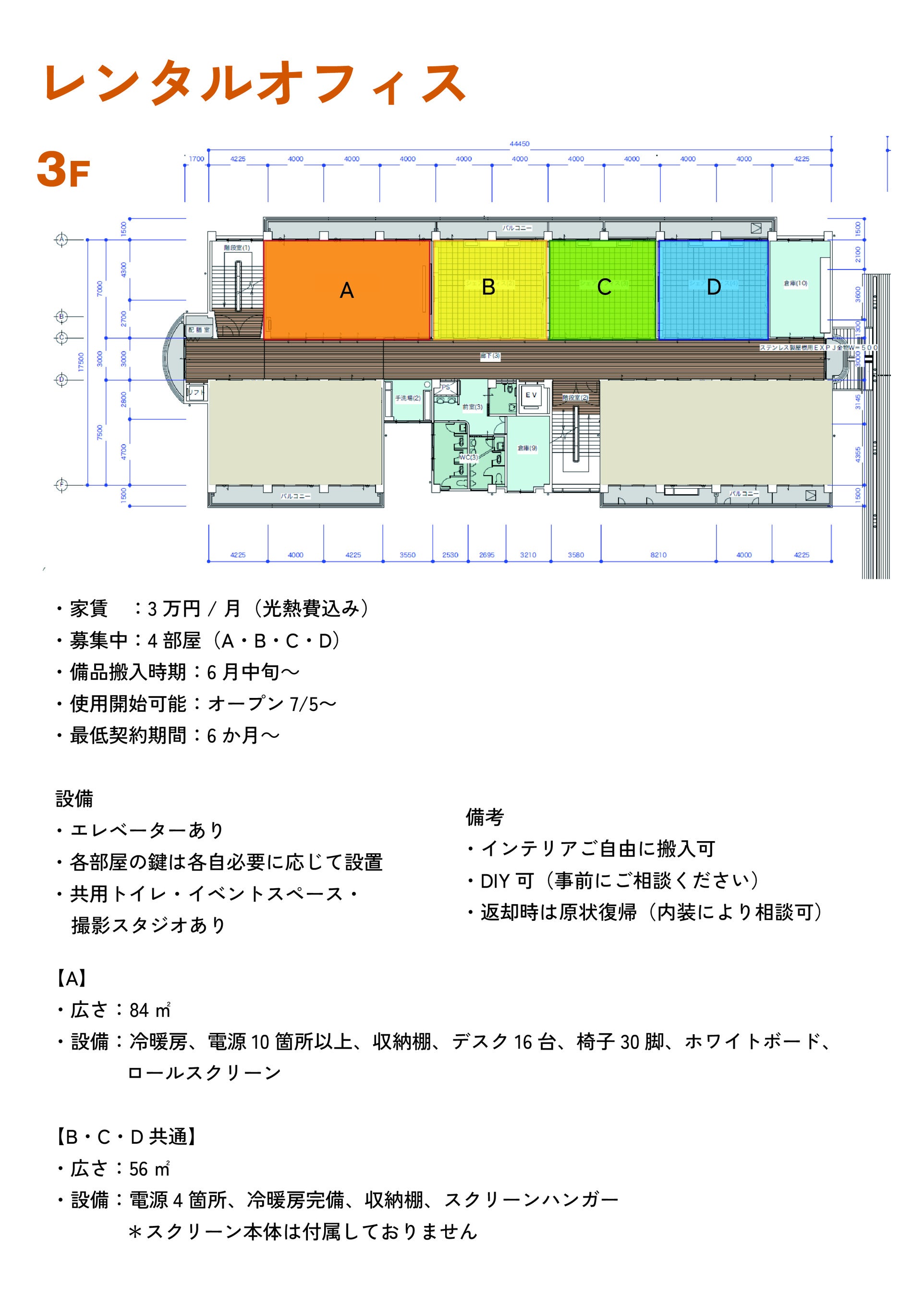 オープンにあたり3Fのレンタルオフィスの利用の事業者様を募集いたします。