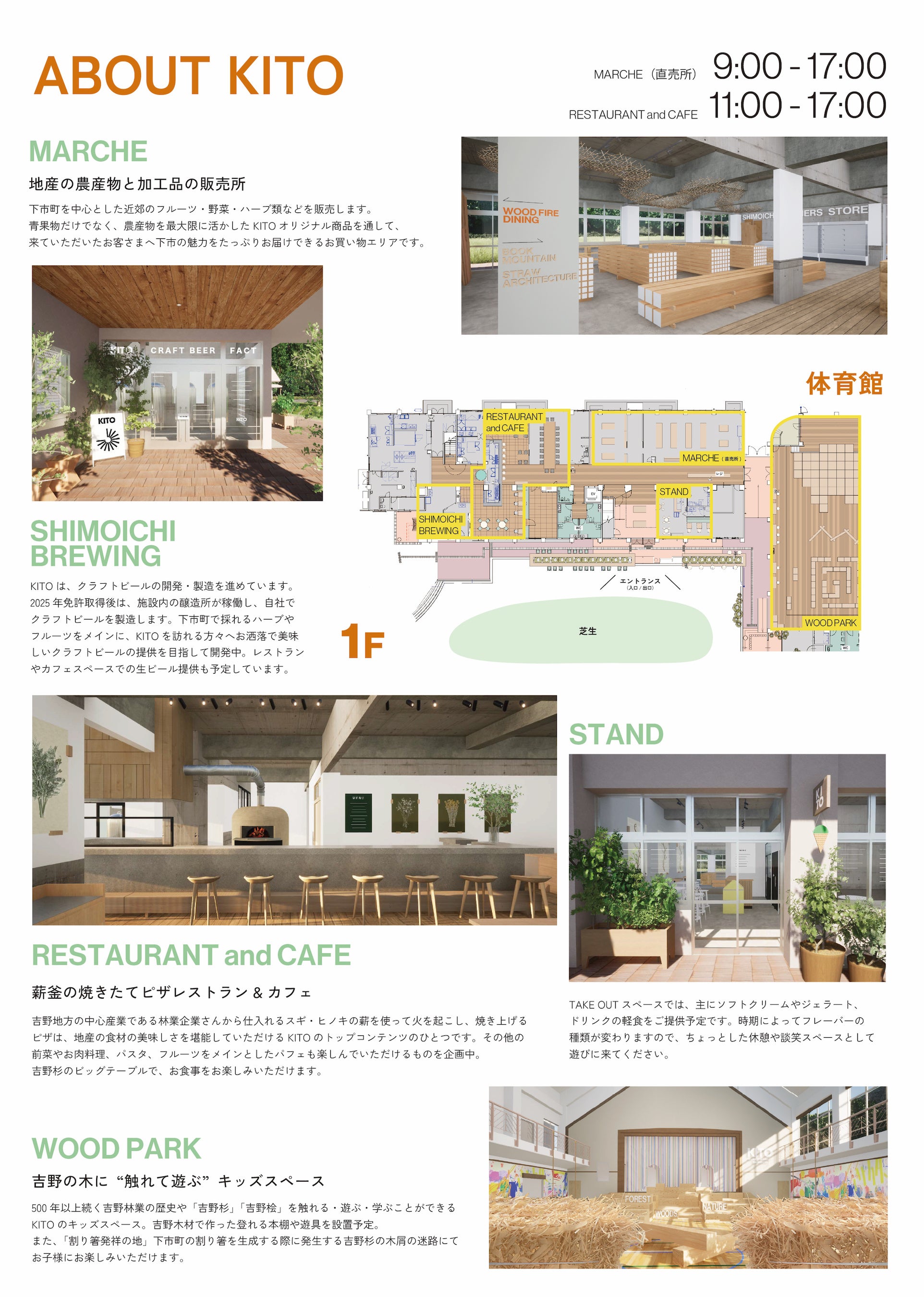 この施設 【 施設名 KITO、キト 】では、低層階にレストラン・マルシェ・ショップ・テイクアウトスタンド・ブルワリー・キッズスペース・ギャラリーを携え、2024年7月5日にグランドオープンを迎えます。