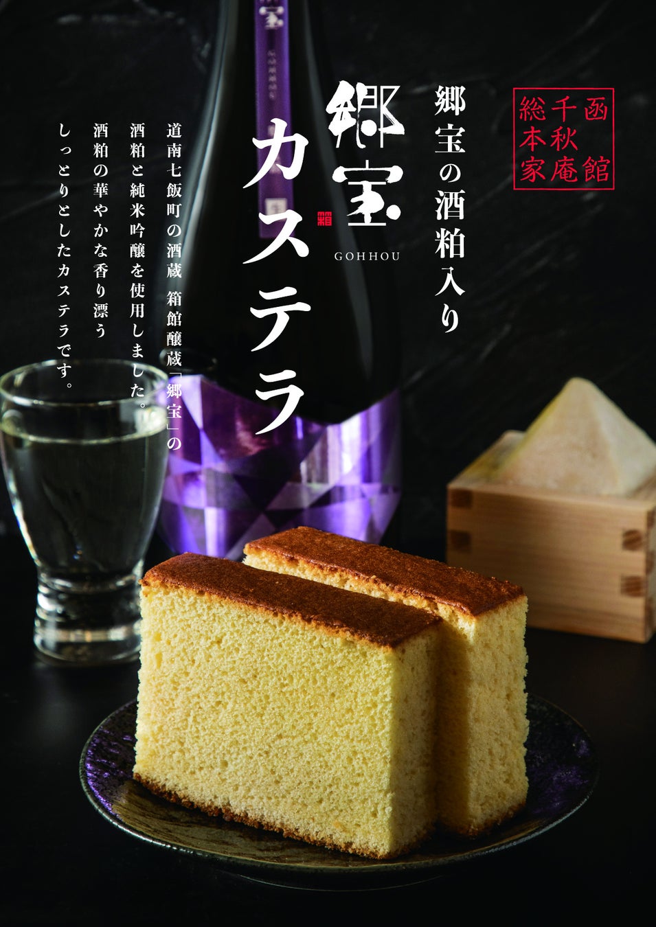 千秋庵総本家では、北海道七飯町の箱館醸蔵が作るお酒「郷宝」の酒粕を使用した、新商品「郷宝カステラ」を4月29日(月)より発売いたします。郷宝の酒粕と純米吟醸を贅沢に使用した「郷宝カステラ」は、しっとりとした食感と華やかな香りが特徴のカステラです。