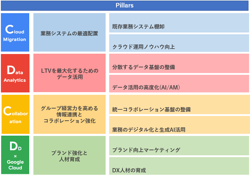 創造的で革新的な「ブランドカンパニー」への変革を掲げられるDDグループ様の取り組みを、Google Cloud のもつテクノロジーやメソドロジーを活用してご支援できることを大変嬉しく思います。DDグループ様の「グループ経営力の強化」「LTV(ライフタイムバリュー)の最大化」にむけたDXの取り組みを、共に進めてまいります。