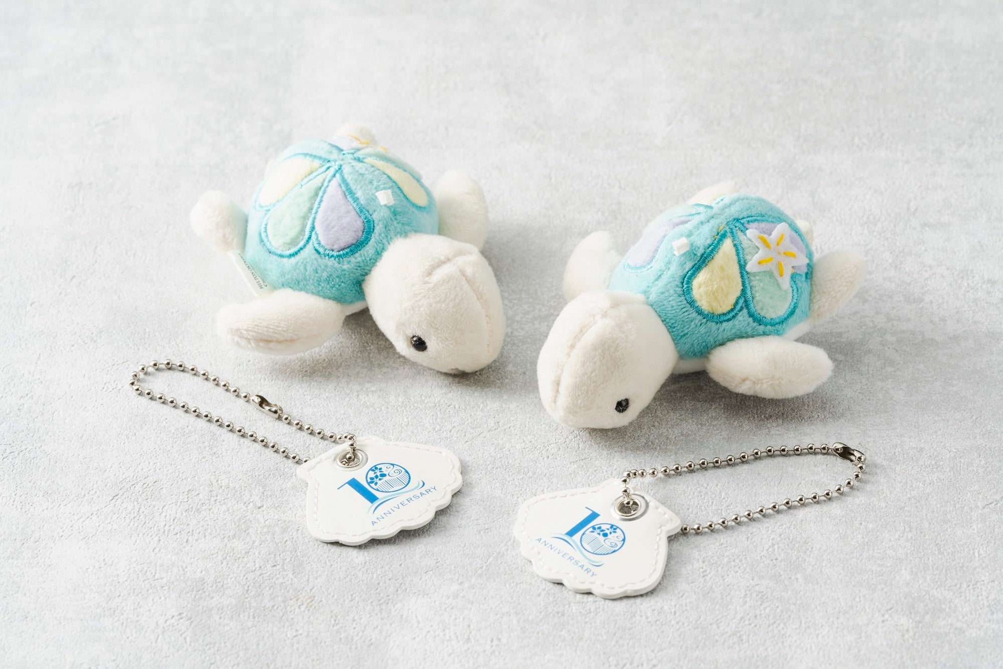 ヒルトン沖縄北谷リゾートの開業10周年を記念して作成した、オリジナルロゴ付きウミガメのマスコットを当日ご宿泊のお客様へプレゼントいたします。オリジナルロゴは「10」という数字を、北谷町の花として制定されている「フイリソシンカ」、沖縄県の伝統的な染物「紅型(びんがた)」と「ホテル外観のライン」で形成し、ホテルの目の前に広がる青い海と波を連想させるデザインに仕上げました。ぜひ、旅の思い出にお持ち帰りください。