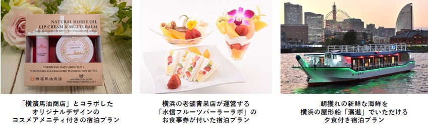横浜桜木町ワシントンホテルは、老舗飲食店や商業施設など横浜エリアのプレイヤーと連携し、地域の特産品や イベントなどとコラボした宿泊プランを積極的に企画・販売し、横浜エリアの魅力を国内外に広く発信すること で、地域の発展に貢献することに取り組んでいます。2023年度は、年間を通して10社以上のパートナーと連携 した宿泊プランを展開、約1,000人のお客様に横浜エリアの魅力を知っていただきました。