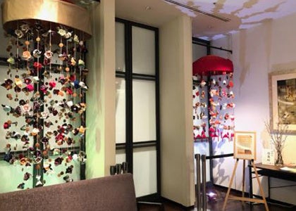 日本三大つるし飾りの一つに数えられる山形県酒田市の「傘福(かさふ く)」2基と、山形県の特産品で冬の間でも満開の花を楽しめる「啓翁 (けいおう)桜」の装飾に加え、山形県の郷土文化や観光情報などを展 示し、国内外から銀座に訪れる宿泊客に、山形県の魅力を伝える機会を 創出しました。