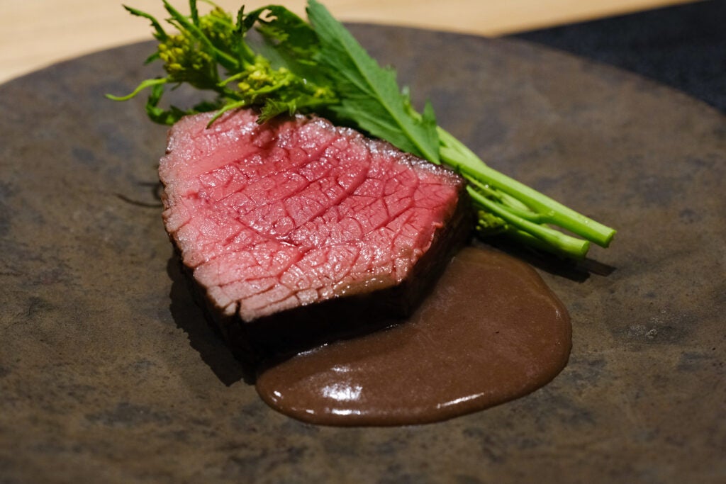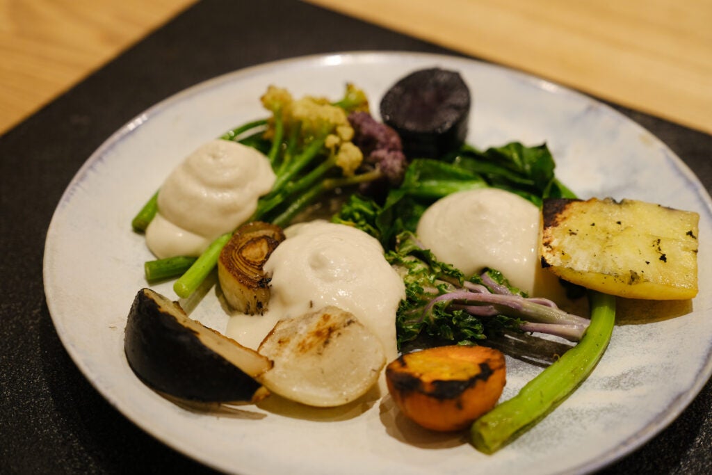 炭火で直に焼いた鹿肉の火入れ加減、色とりどりの鮮やかな旬の野菜達、それらを黒麹や鰯を発酵し、うま味が濃縮されたこだわりのソースを合わせることで生まれる新しい発見。