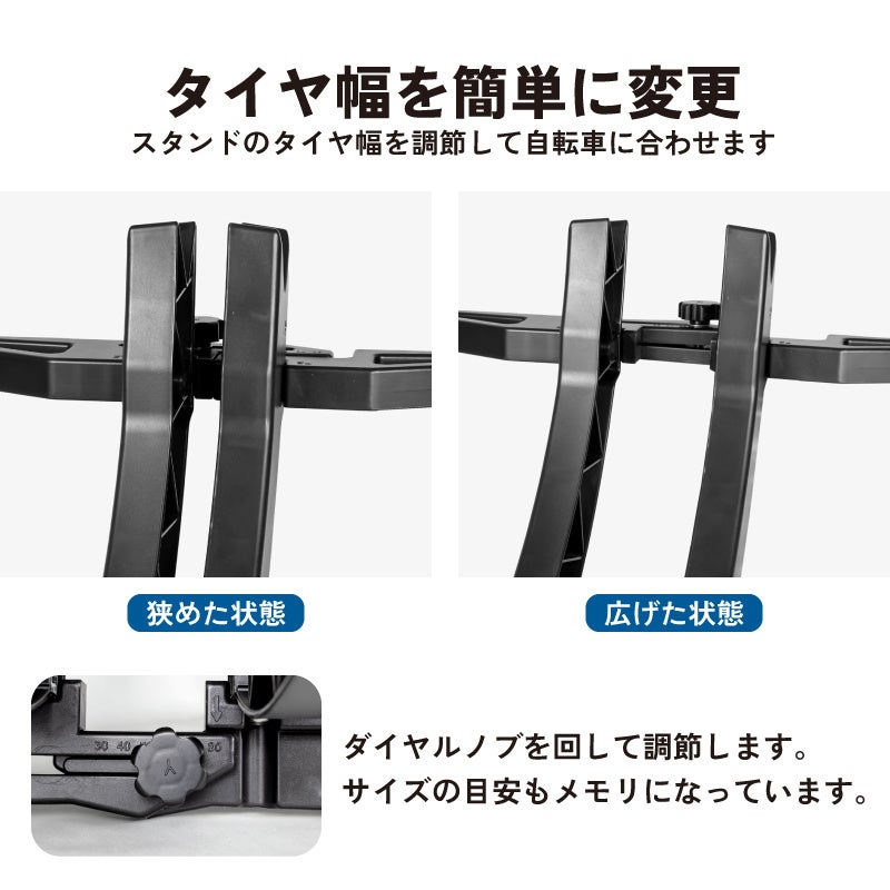 タイヤ幅の調整はノブを回すだけで簡単に行えます。